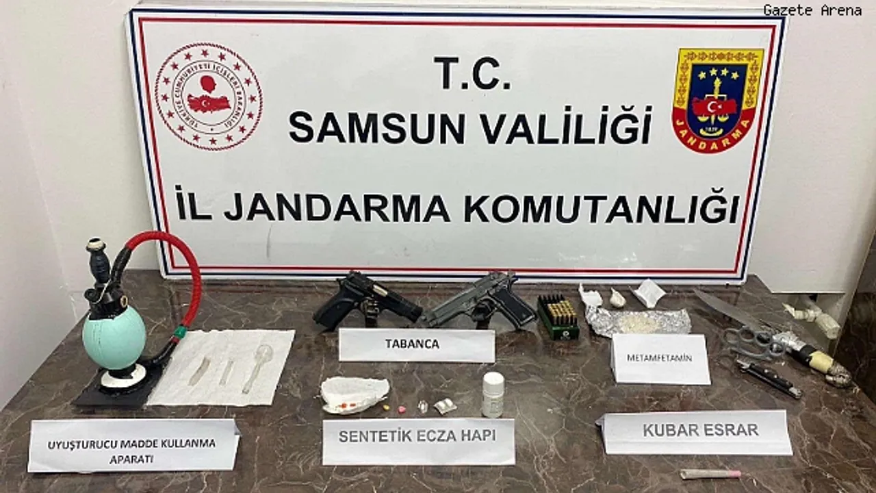 Olay, Samsun'un İlkadım ilçesinde meydana geldi. Edinilen bilgiye göre, jandarma ekiplerinin yaptığı çalışmalar neticesinde S.K. isimli şahsın evinde silah ve uyuşturucu madde bulundurduğu bilgisine ulaşıldı. Samsun İl Jandarma Komutanlığı İstihbarat Şube Müdürlüğü, Kaçakçılık ve Organize Suçlarla Mücadele Şube Müdürlüğü ve İlkadım İlçe Jandarma Komutanlığı ekiplerince şahsın evinde arama yapıldı. Yapılan aramada neticesinde 49 gram metamfetamin, 12 adet sentetik ecza, 58 adet kenevir tohumu, 2 gram kubar esrar, 4 adet uyuşturucu madde kullanma aparatı, 2 adet kurusıkı tabanca, 27 adet 9 mm kuru sıkı tabanca mermisi, 2 adet bıçak ve 1 adet muşta ele geçirildi. S.K. jandarma ekipleri tarafından yakalandı. Soruşturma devam ediyor.