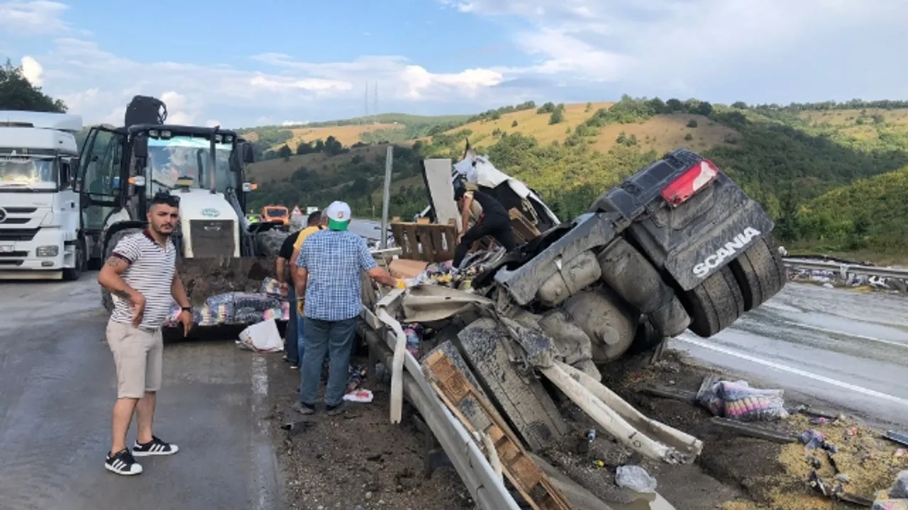 Kaza, ilçeye bağlı Tekke sapağında meydana geldi. Edinilen bilgiye göre, Samsun istikametine seyreden İsmail Yıldırım’ın kullandığı 06AF 450 plakalı makarna yüklü tır, sağanak nedeniyle kayganlaşan yolda kontrolden çıkarak bariyerlere çarpıp, ardından devrildi. Kazanın şiddetiyle tırda yüklü olan makarnalar etrafa saçıldı. Kazada yaralanan olmazken, trafik yaklaşık 15 dakika boyunca kontrollü olarak sağlandı. Olay yerinde yapılan çalışmaların ardından ulaşım normale döndü.