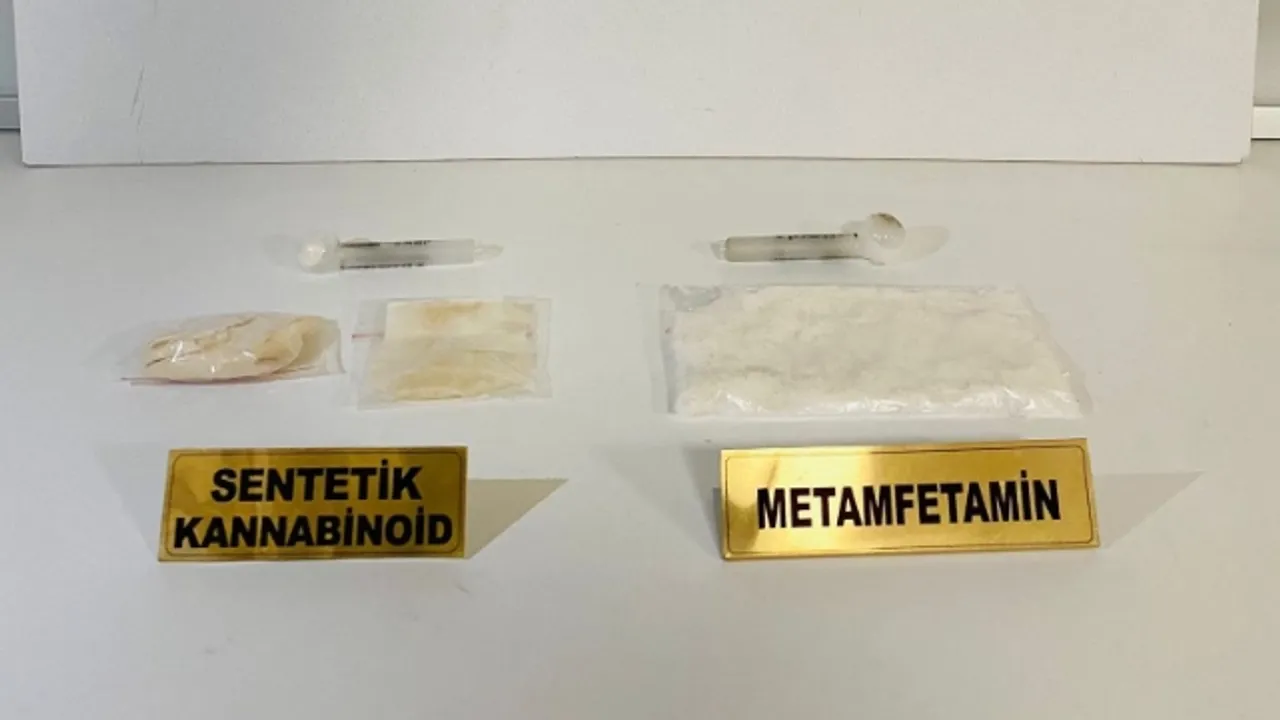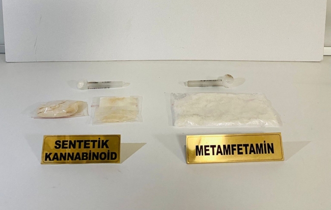 Gözaltına alınan A.Ö. (29) ve E.S.'nin (41) ev ve araçlarında yapılan aramalarda, 56,90 gram metamfetamin, 5 adet peçeteye emdirilmiş 630 kullanımlık bonzai (Sentetik kannabinoid) ve 2 adet uyuşturucu madde kullanım aparatı ele geçirildi. Soruşturma devam ediyor.
