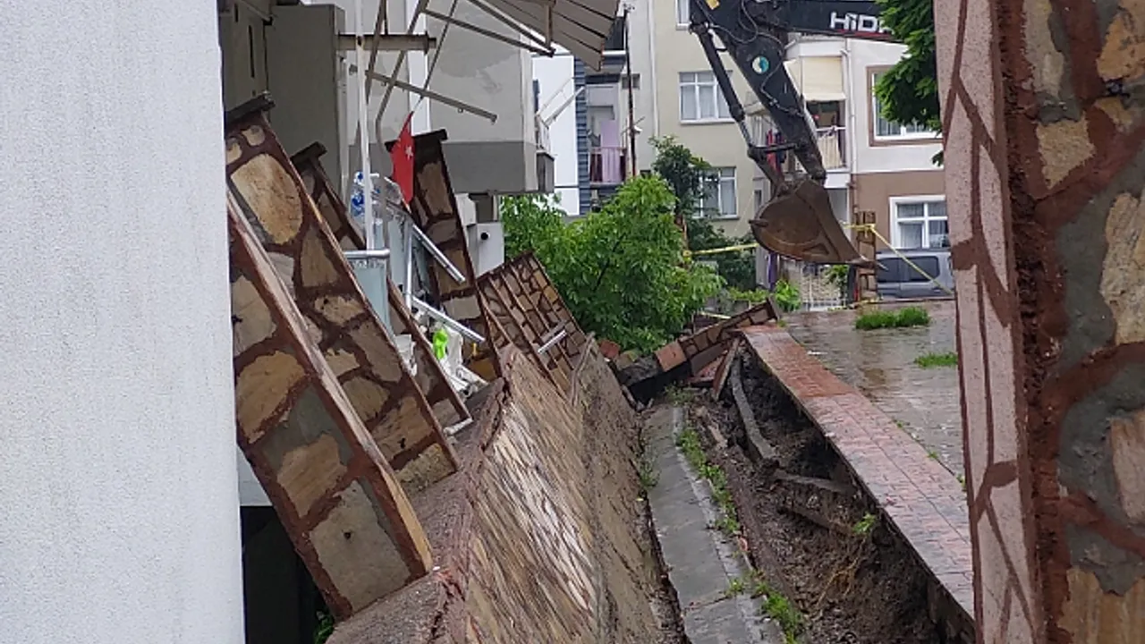Yıkılan duvarı kaldırmak için İlkadım Belediyesi ekipleri tarafından iş makineleri ile çalışma başlatıldı.