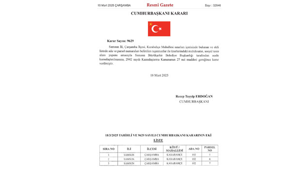 Karar, taşınmazların ada ve parsel numaralarının yer aldığı liste doğrultusunda, bölgedeki sosyal tesis ihtiyacını karşılamak amacıyla alınmış olup, Samsun Büyükşehir Belediyesi tarafından yürütülecek projeye hız kazandırmak için acele kamulaştırma işlemleri başlatıldı.