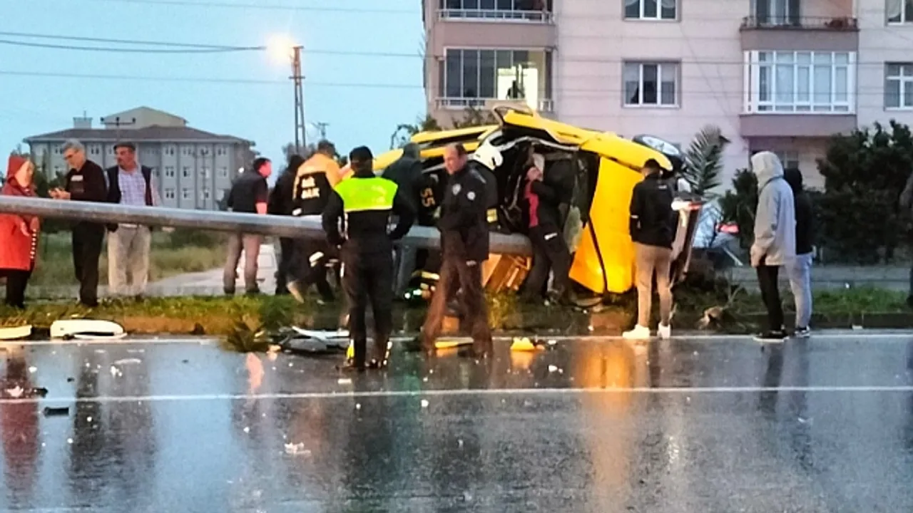 Kaza, Atakum ilçesi Çatalçam mevkii Samsun-Sinop yolu üzerinde meydana geldi. Edinilen bilgiye göre, Hüseyin Çilenkoğlu (29) idaresindeki 55 T 5717 plakalı taksi önüne çıkan köpeğe çarpmamak için manevra yaptığı sırada refüjdeki aydınlatma direğine çarptı. Kazada taksi sürücüsü Hüseyin Çilenkoğlu ile takside bulunan yolcu Furkan Karaismailoğlu (21) yaralandı. Yaralılar, ambulanslarla Samsun Ondokuz Mayıs Üniversitesi Tıp Fakültesi Hastanesine kaldırılarak tedavi altına alındı.