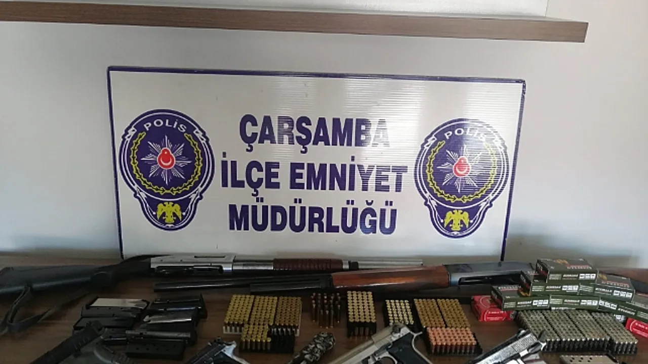 Edinilen bilgiye göre, Çarşamba İlçe Emniyet Müdürlüğü Asayiş Büro Amirliğince yapılan çalışmalar kapsamında adli makamlardan alınan arama kararına istinaden R.K., B.A., K.Y., K.A., O.A. ve E.Ç. isimli şahısların ikamet ve işyerlerinde yapılan aramalarda 2 adet ruhsatsız tabanca, 1070 adet değişik çaplarda tabanca fişeği, 2 adet av tüfeği, 1 adet sustalı bıçak, 10 adet tabanca şarjörü, 2 adet kurusıkı tabanca, 16 adet sentetik ecza hapı, 7,60 gram uyuşturucu esrar maddesi ele geçirildi. Şüpheli şahıslar hakkında adli işlem başlatıldı.