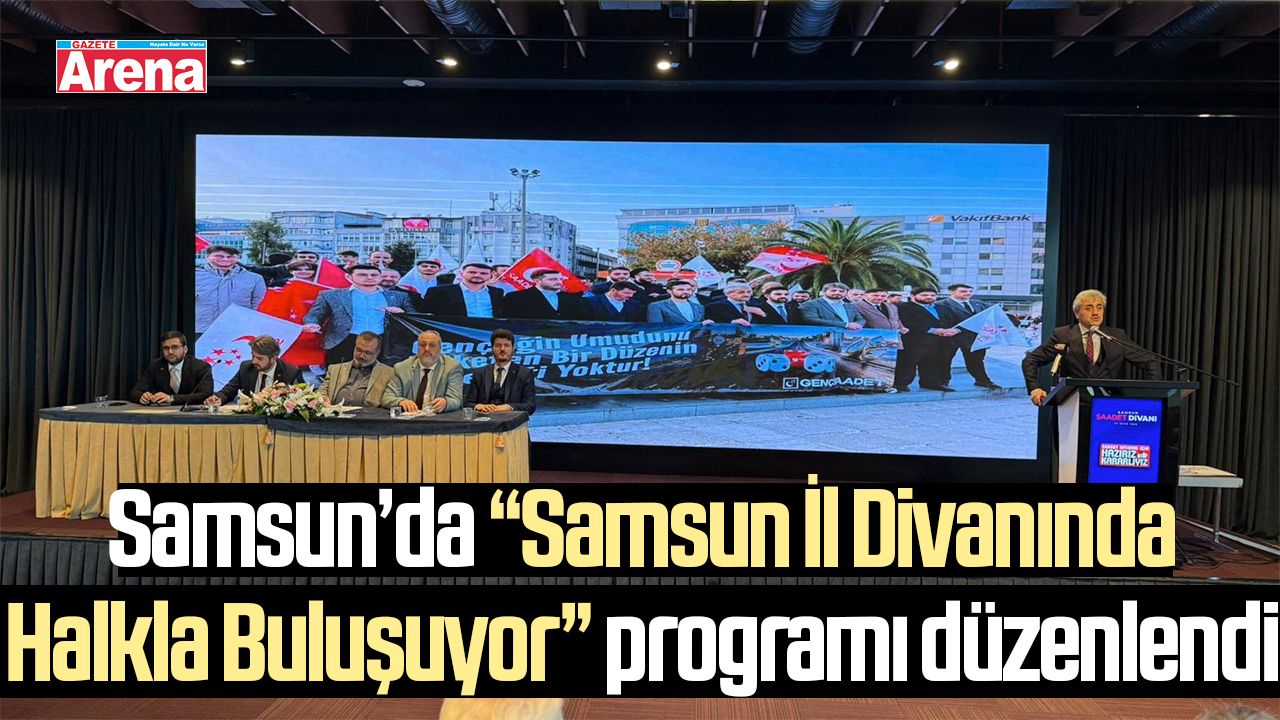 Saadet Partisi Samsun İl Başkanlığı tarafından gerçekleştirilen “Samsun İl Divanında Halkla Buluşuyor” programı gerçekleştirildi. Programda, Samsun il ve ilçe teşkilatlarının yanı sıra Millî Görüşçü Kuruluşların (MİLKO) son bir yıllık faaliyetleri kamuoyuyla paylaşıldı.