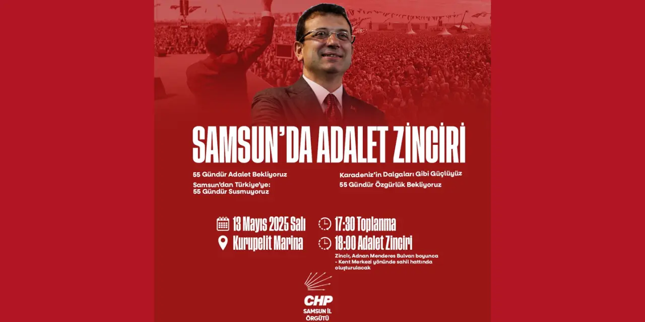 “Cumhurbaşkanı adayımız Sayın Ekrem İmamoğlu’nun hukuksuz ve siyasi bir kararla tutuklanmasının üzerinden 13 Mayıs Salı günü 55 gün geçmiş olacak. Samsun halkı olarak, millet iradesinin gasp edilmesine, adaletin siyasallaştırılmasına ve özgürlüklerin kısıtlanmasına sessiz kalmadık, kalmayacağız.”