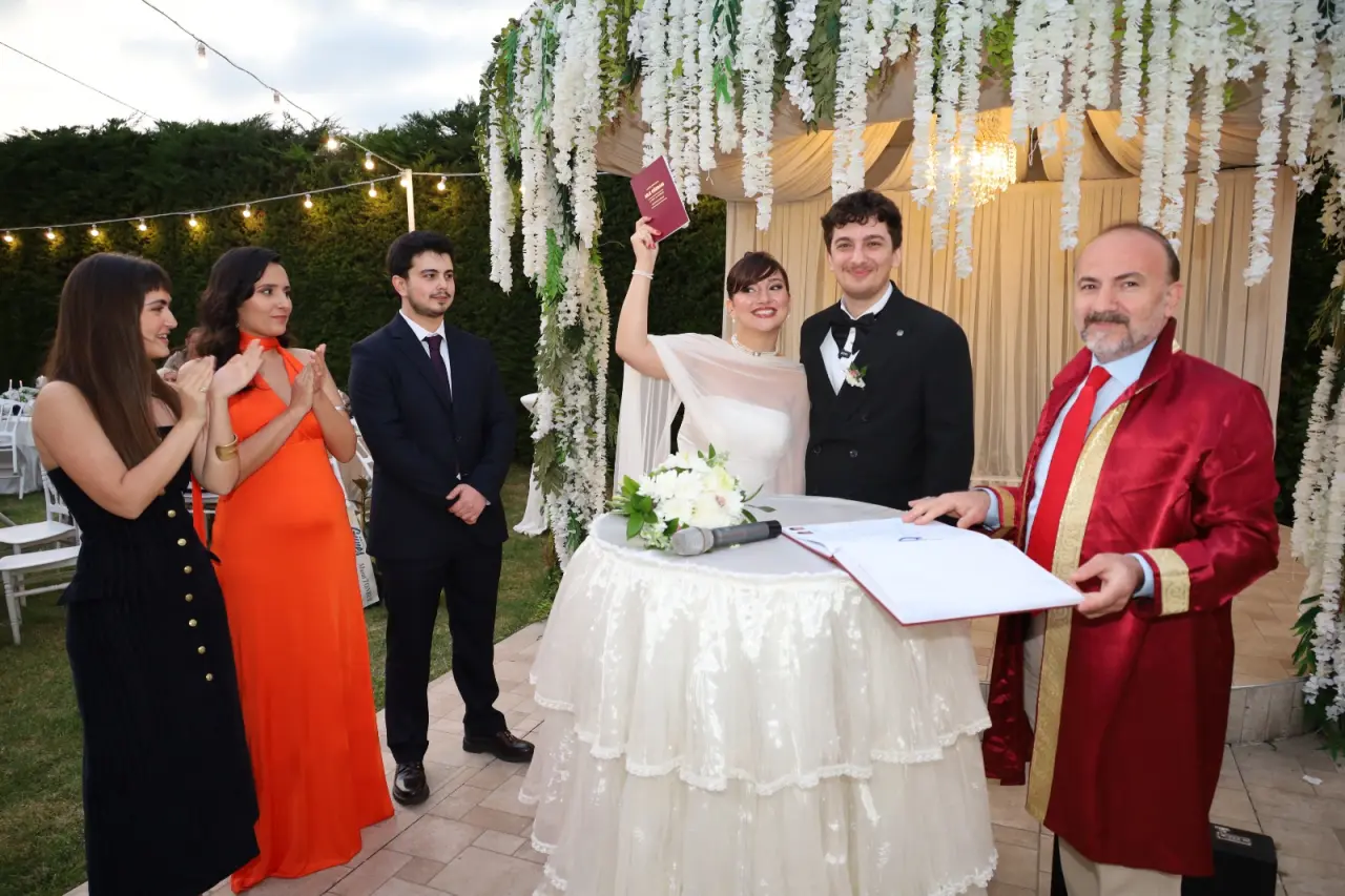 Genç çift, alkışlar, konfetiler ve meşaleler eşliğinde düğün salonuna giriş yaptı. İlk danslarını gerçekleştiren Berfin & Ünsal’ın mutluluğu salondaki davetlilerin alkışlarıyla taçlandı. Nikâh töreni, Bafra Belediyesi Nikâh Memuru Yaşar Şenel tarafından kıyıldı. Şenel, törende yaptığı konuşmada çifte bir ömür boyu mutluluk dileyerek nikâh cüzdanını gelin Berfin Kurumahmutoğlu’na takdim etti.