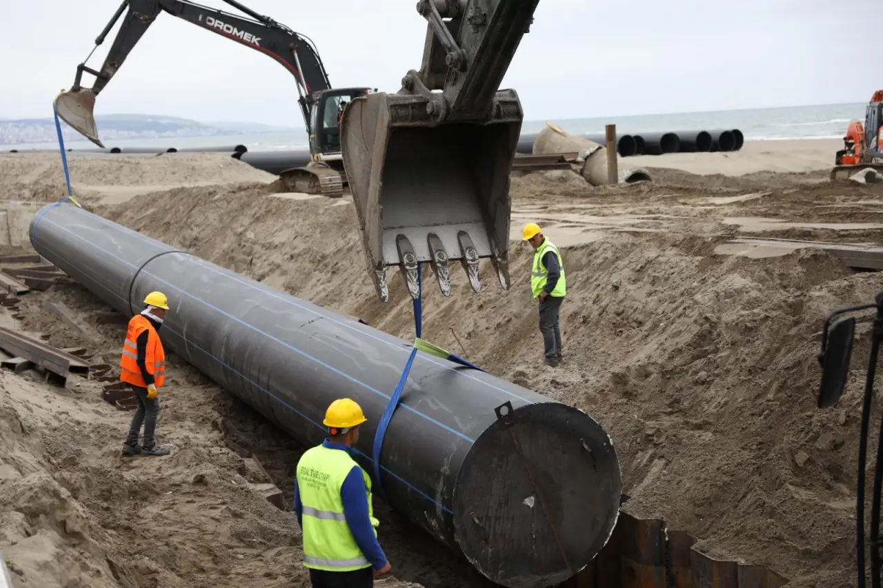 Samsun Büyükşehir Belediyesi Su ve Kanalizasyon İdaresi (SASKİ), Atakum sahilinde devreye aldığı Atık Su Kollektör Hattı Projesi ile ilçede altyapı kapasitesini iki katına çıkaracak. Adnan Menderes Bulvarı'nda başlayan çalışmalar, deniz seviyesinin altına yerleştirilen dev borularla sürdürülüyor. Projenin başlangıç noktasında bin 600 mm çapında polietilen borular kaynakla birleştirilerek yerleştirildi. Demir kazıklar çakılarak altyapının temel adımları atıldı. Proje, doğa dostu malzemelerle ve modern mühendislik teknikleriyle hayata geçiriliyor.