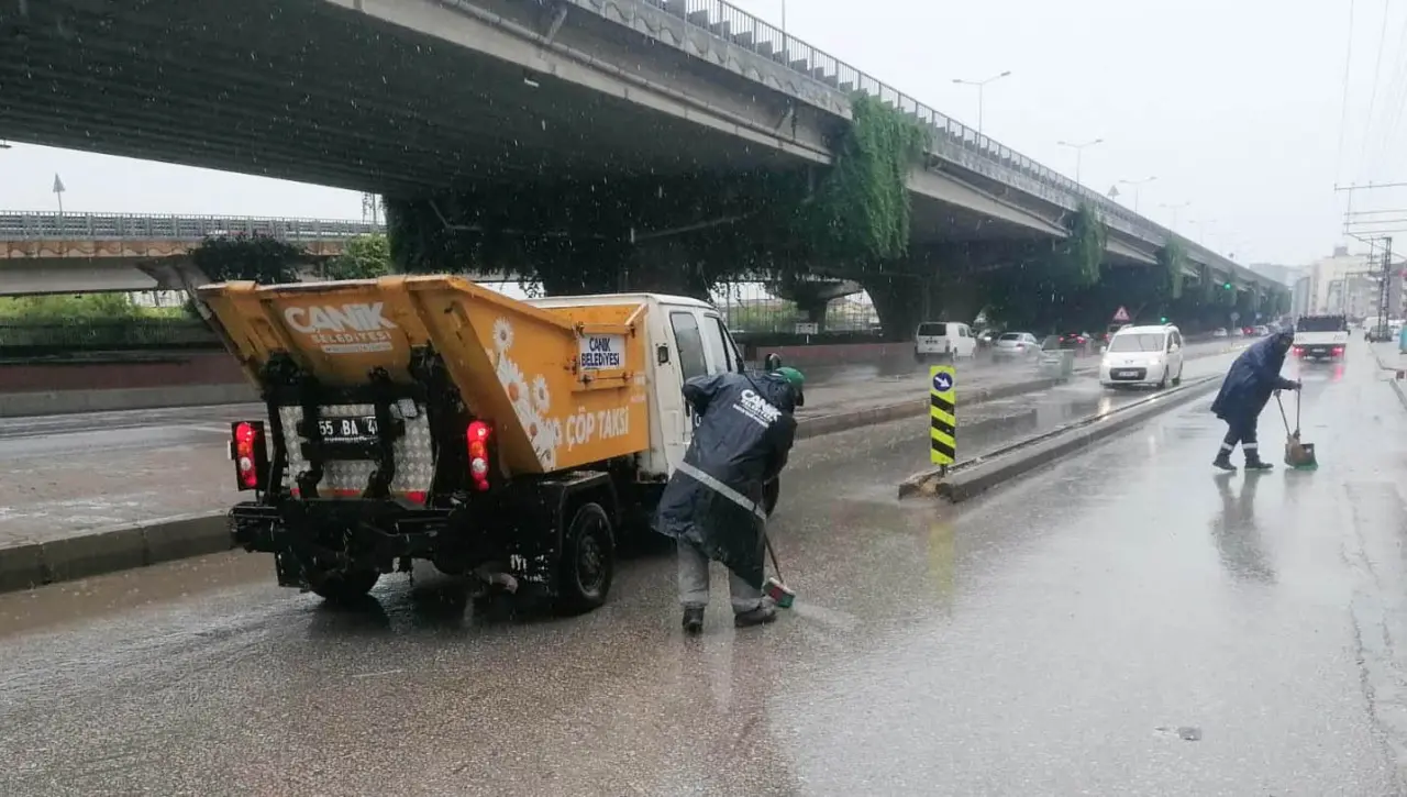 Yağış öncesi mazgal temizliği, su gideri kontrolleri ve riskli bölgelerdeki ön hazırlıklar tamamlandı. Canik Belediyesi ekipleri, yoğun yağışın başlamasıyla birlikte ilçe genelinde: