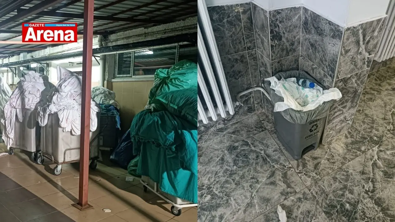 Gazete Arena'nın hastanede yaptığı incelemelerde, hijyen kurallarının açıkça hiçe sayıldığı görüldü. Su akıtan bir klimanın altına ameliyat sırasında hastanın altına serilen çarşaf yerleştirildi. Ameliyat sonrası sedyede ve hasta yataklarında kullanılan çarşafların ise hastanenin havalandırma alanında yerlerde sürüklendiği, toz ve kir içinde bekletildiği objektife yansıdı. Enfeksiyon riski taşıyan bu manzara karşısında vatandaş isyan etti.