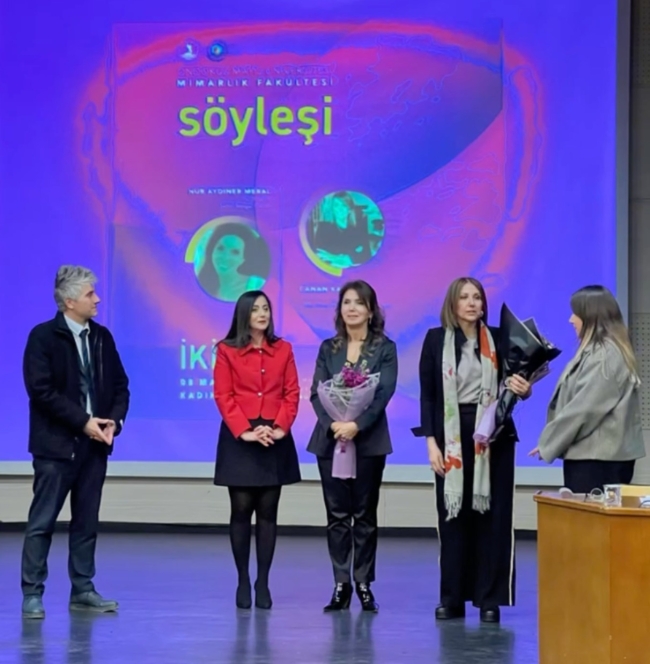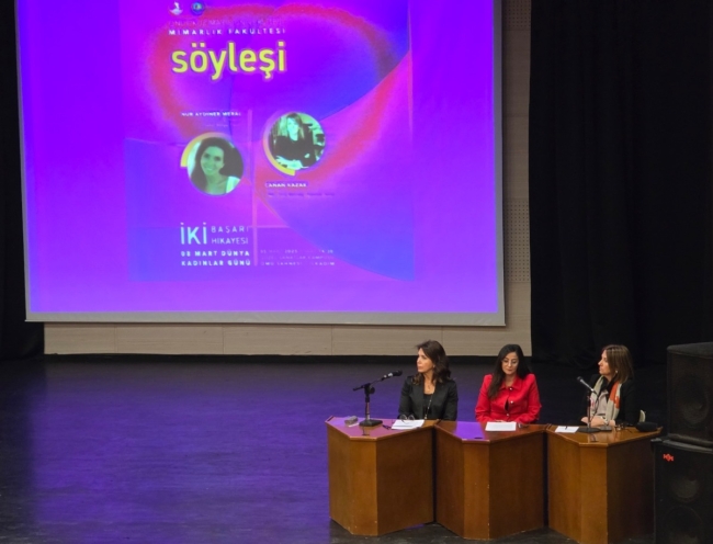 OMÜ Mimarlık Fakültesi, 8 Mart Dünya Kadınlar Günü kapsamında “İki Başarı Hikayesi” başlıklı söyleşi düzenledi. Söyleşi, Doç. Dr. Serpil Kaptan moderatörlüğünde, OMÜ Fizik Bölümü Öğretim Üyesi Prof. Dr. Canan Kazak ve (İş İnsanı) Şehir Bölge Plancı Nur Aydıner Meral’in katılımıyla OMÜ Güzel Sanatlar Kampüsü OMÜ Sahnesi'nde gerçekleştirildi.