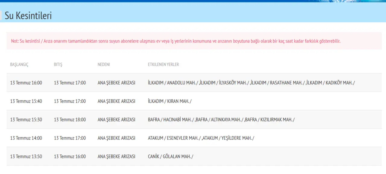 Vatandaşlar, su kesintilerine dair daha fazla bilgi almak için SAMSU’nun resmi internet sitesi veya çağrı merkezi üzerinden iletişime geçebilirler.