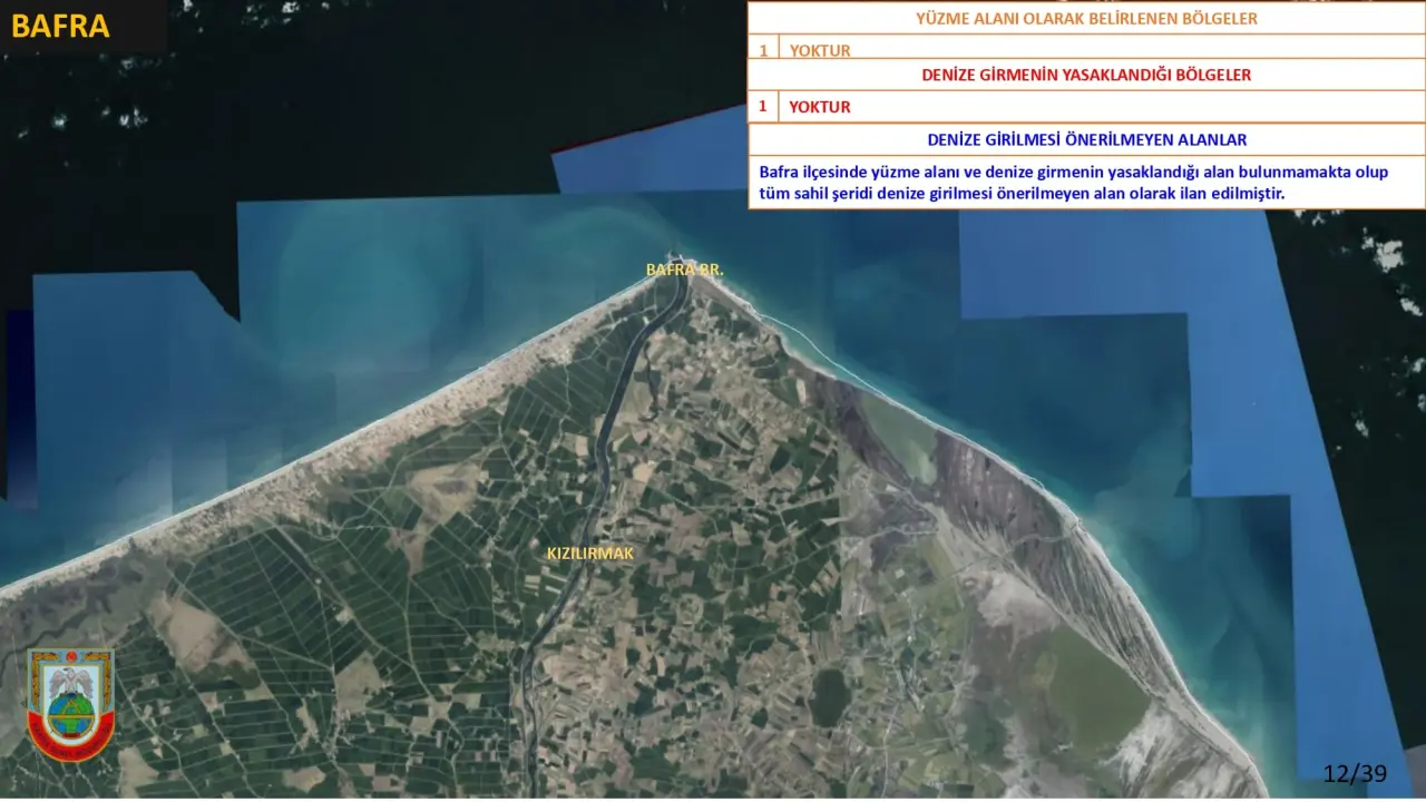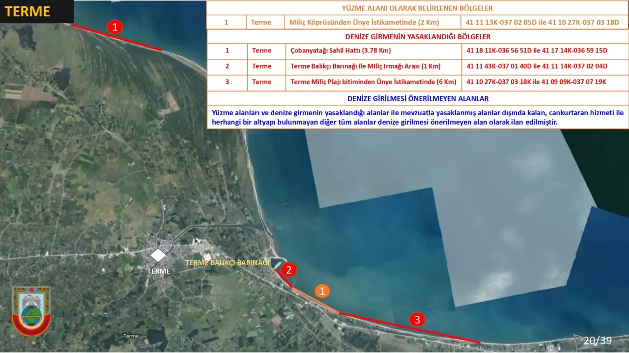 Peçko Fırın ile Kurupelit Deresi arasındaki 1,4 Km’lik alan ve Kürtün Irmağı ile Golf Sahasının bitimine kadar olan kıyı bölgesi 840 metrelik kıyı bölgesi denize girmenin yasak olduğu yerler arasında. Samsun Valiliği’nin konu hakkındaki detaylı açıklamasına aşağıdaki link üzerinden ulaşabilirsiniz.
