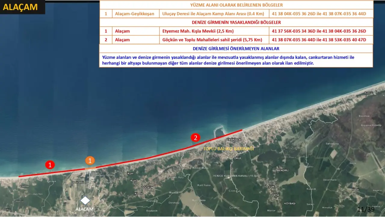 Dereköy Balıkçı Barınağı ile Aquapark arasındaki 1,22 Km’lik alan ve Kelin Deresi’nin 250 m doğusu ve batısı arasındaki yarım kilometrelik bölgede de denize girmek “tehlikeli ve yasak” olarak ilan edildi.