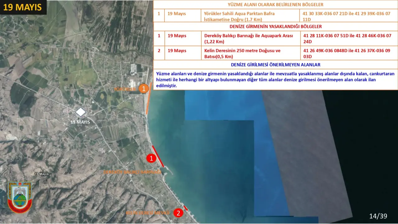 Her yıl onlarca kişinin boğularak vefat ettiği, yüzlerce kişinin de boğulma tehlikesi atlattığı Samsun sahillerinde, valilik tarafından aşağıdaki 18 yer ve bu yerlerdeki toplam 46,5 kilometre uzunluğundaki bölgede denize girmek “tehlikeli ve yasak” olarak ilan edildi: