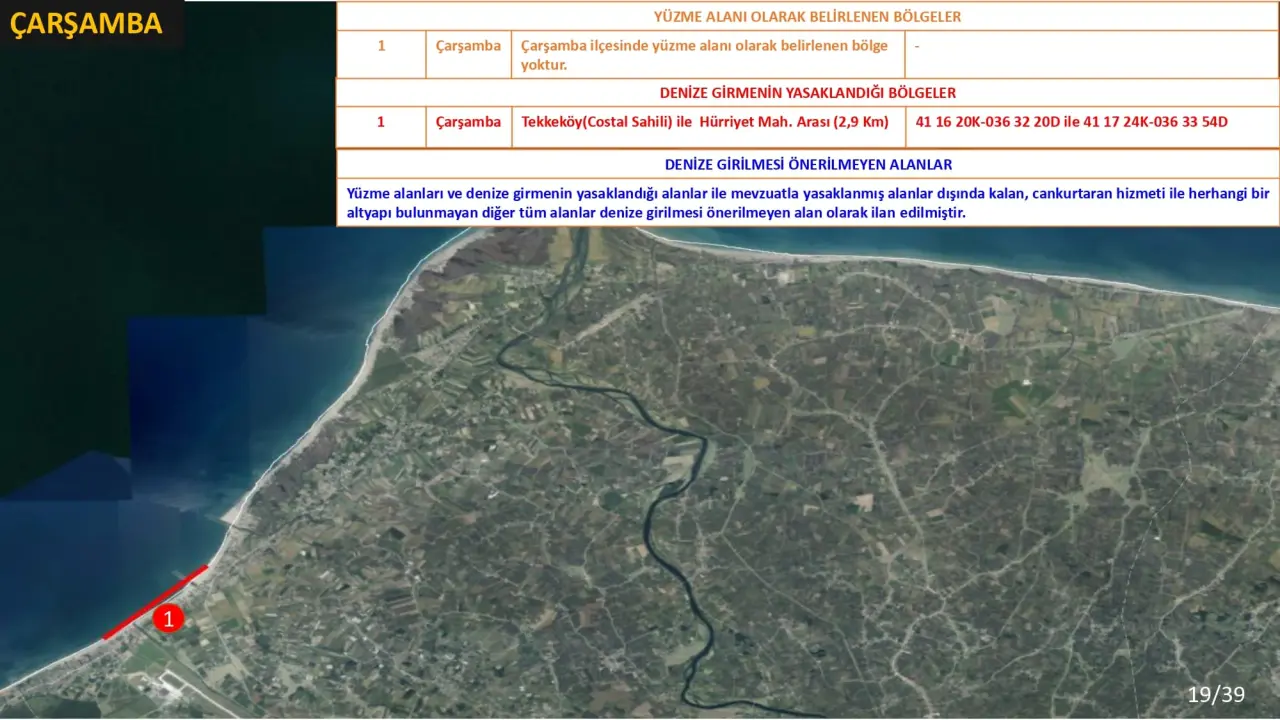 Tekkeköy Limanı ile Canik ilçe sınırı arasındaki 9 Km’lik yerde denize girmek yasak.