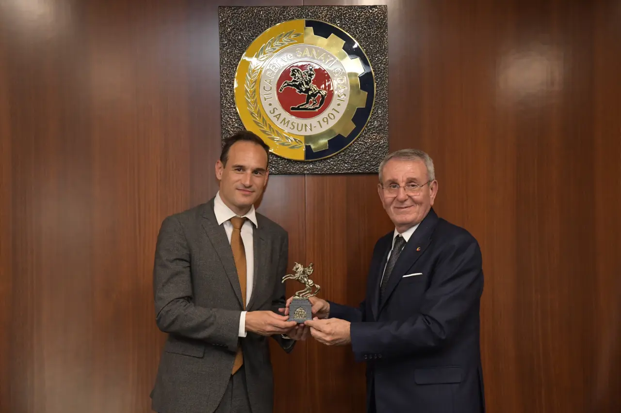 Bir dizi program için Samsun’a gelen Slovenya Ankara Büyükelçisi Gorazd Rencelj, Samsun Ticaret ve Sanayi Odası Yönetim Kurulu Başkanı Salih Zeki Murzioğlu’nu makamında ziyaret etti. Ziyarette, karşılıklı iş birliği imkanları görüşüldü.