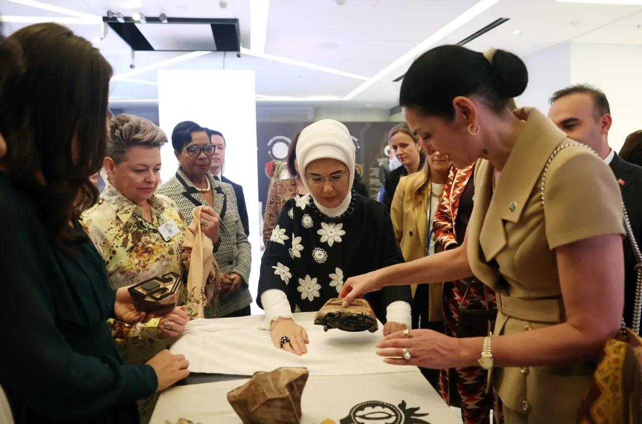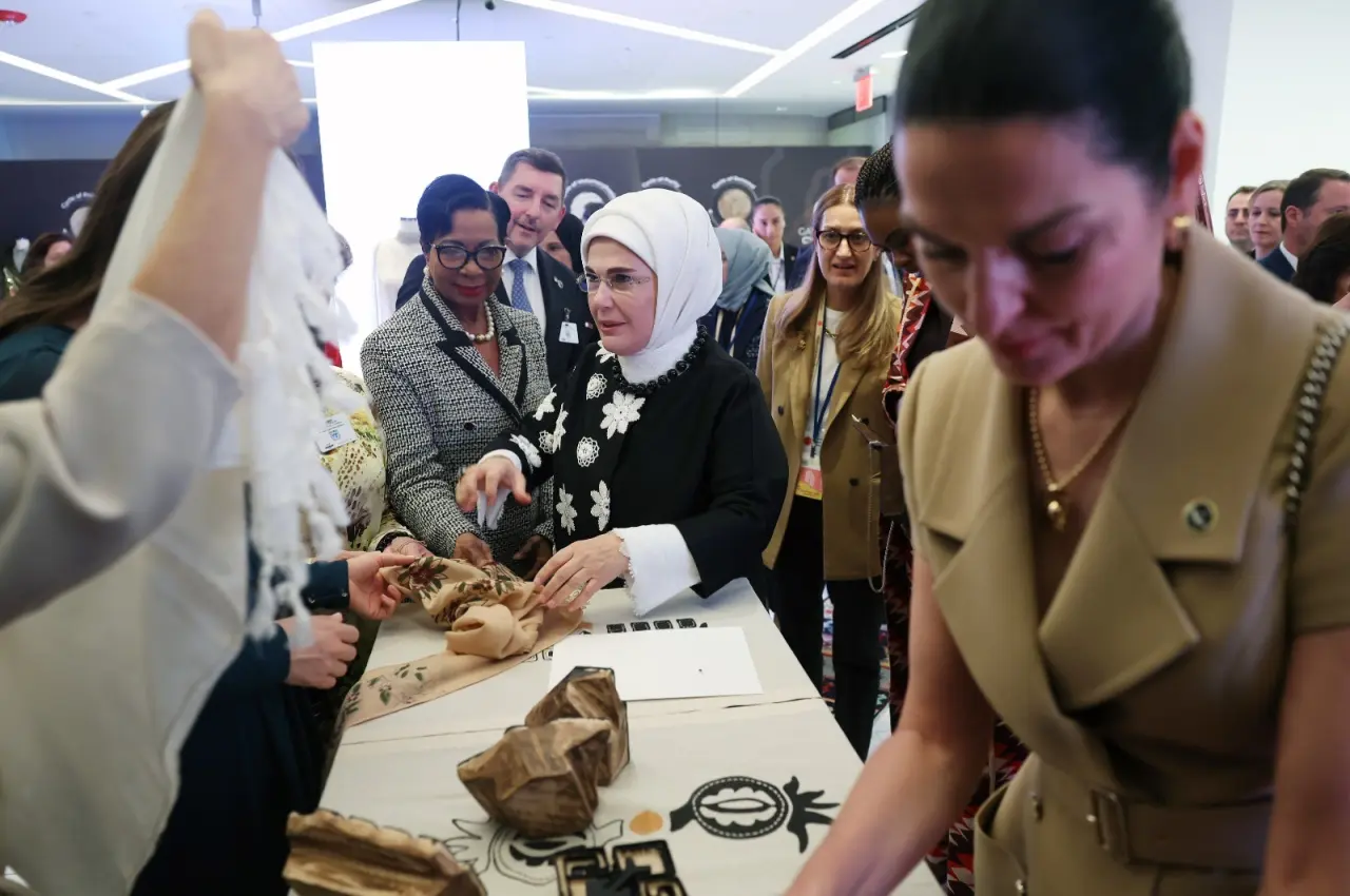 Sergiye katılan dünya liderlerinin eşleri, Samsun’un kültürel ürünlerini yakından inceleme fırsatı buldu. Emine Erdoğan’ın eşlik ettiği lider eşleri, Samsun’da üretilen kenevir kumaşı ve Susuz bezi üzerine yapılan baskıları deneyimleyerek bu eşsiz kültürel mirası yakından tanıdı.