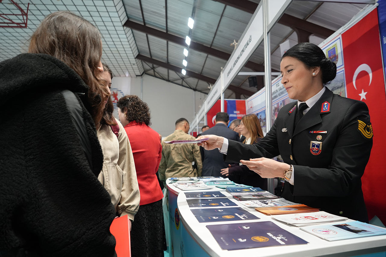Samsun Ondokuz Mayıs Üniversitesi (OMÜ) ev sahipliğinde düzenlenen fuarda yer alan jandarma ekipleri, hem kurumun faaliyetlerini tanıttı hem de toplumsal güvenlik konularında hayati uyarılarda bulundu. Özellikle kadına yönelik şiddete karşı alınan koruyucu tedbirler ve internet üzerinden gerçekleştirilen dolandırıcılık yöntemlerine karşı izlenmesi gereken yollar katılımcılara detaylı bir şekilde aktarıldı.