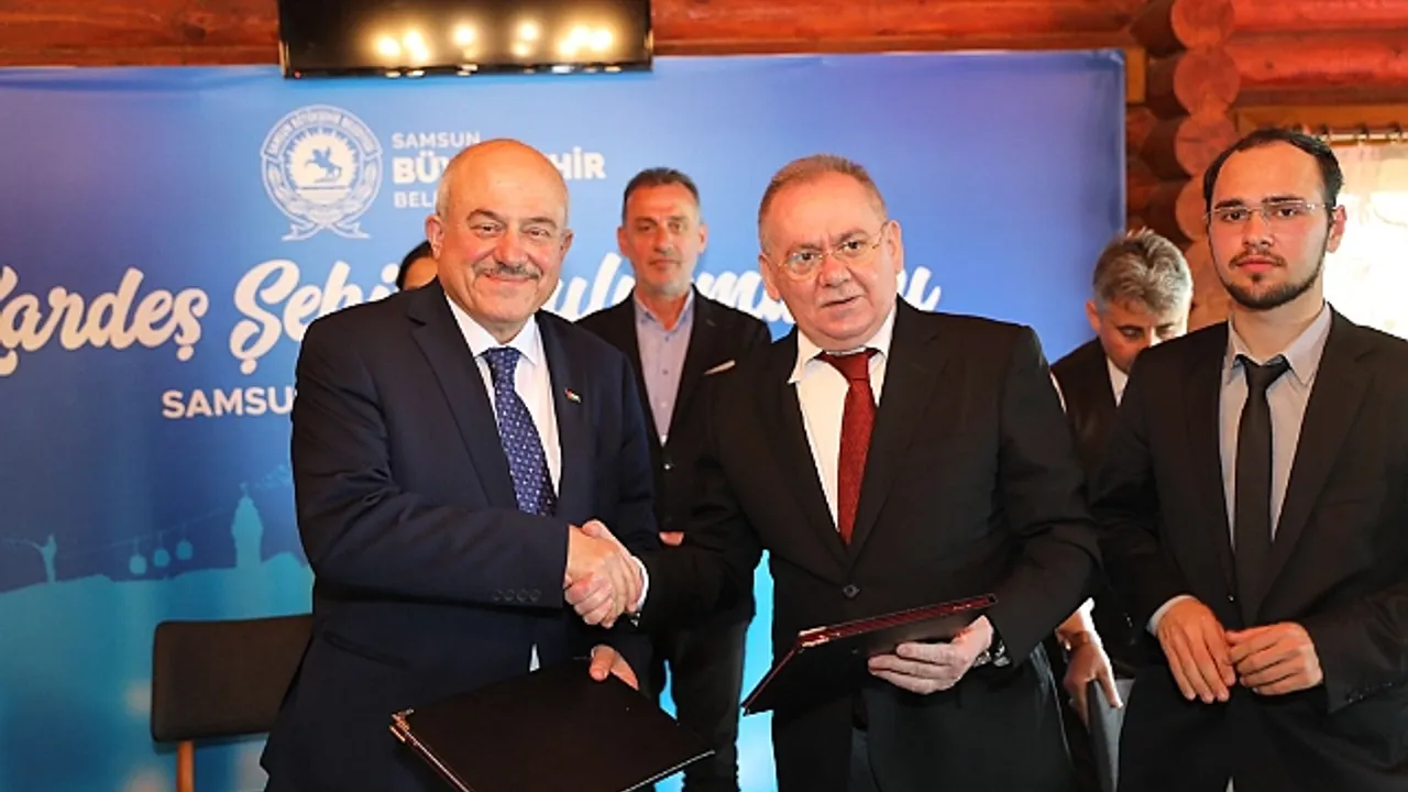 Samsun ile Filistin’in Nablus şehri imzalanan protokol ile ‘kardeş şehir’ oldu. Düzenlenen programa Samsun Büyükşehir Belediye Başkanı Mustafa Demir, Büyükşehir Belediyesi Genel Sekreteri İlhan Bayram, Genel Sekreter Yardımcıları ve Daire Başkanları ile Filistin’in Nablus Belediye Başkanı Dr. Sami A. Hiijawi ve eşi Halak K. Hiijawi, Nablus Belediyesi Dış İlişkiler Müdürü Abdelafo S.Aker, Filistin Devleti Büyükelçiliği Müsteşarı Rana Abusiba katılırken, 19 Mayıs Atatürk’ü Anma Gençlik ve Spor Bayramı kutlamaları için kente gelen ‘kardeş şehir’ heyeti Azerbaycan Sumgayıt Belediye Başkan Vekili Orhan Adıgözelzade, Tören ve Organizasyon Şube Müdürü Ilgar Alıyev, Belediye Meclis Üyesi Ferid Memmedov, Belediye Meclis Üyesi aynı zamanda Genel Sekreter Akif Kerimov ve Basın Sorumlusu Natevan Ahmadova da programda bulundu.