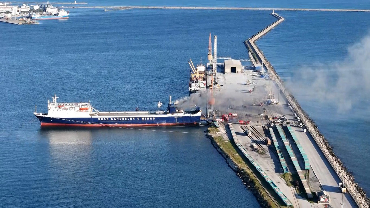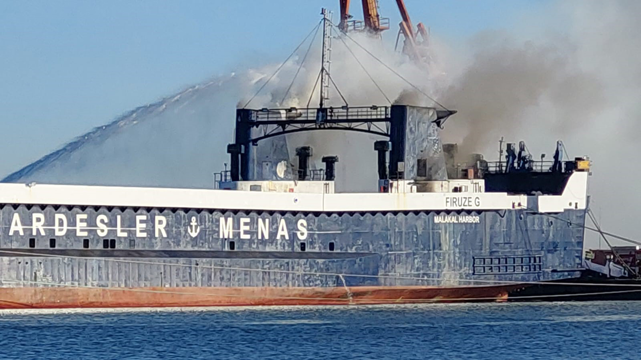 Ceynak Grup Samsunport Sanayi Rıhtımı'nda demirli bulunan Uçak Kardeşler-Menas isimli kuru yük gemisinde henüz bilinmeyen bir nedenle yangın çıktı.