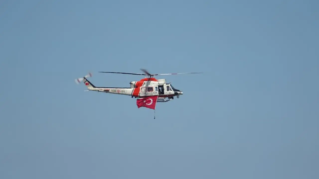Tören geçişine havadan da destek verildi. Sahil Güvenlik Komutanlığı'na ait bir helikopter, deniz kortejini havadan takip ederek törene ayrı bir dinamizm kattı. Helikopterin uçuşu sırasında yapılan manevralar izleyenler tarafından ilgiyle izlendi.