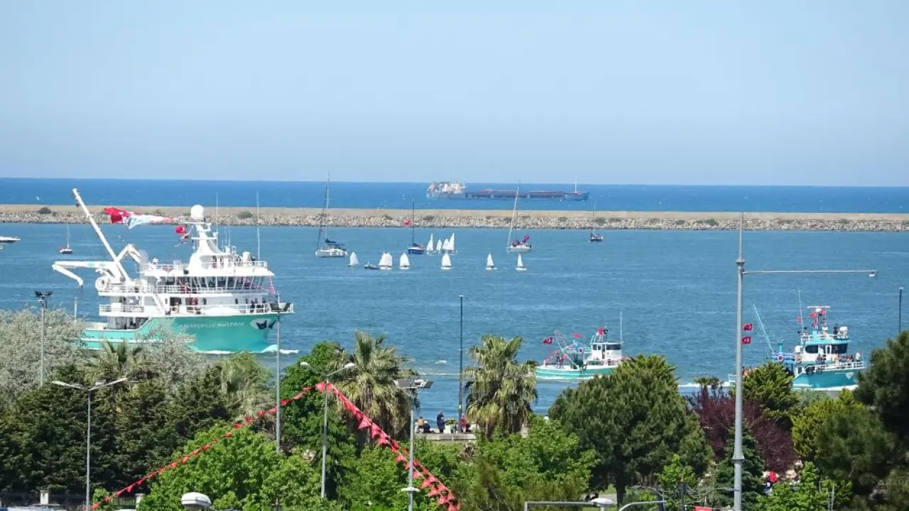 Samsun Limanı’nda düzenlenen etkinlikte, balıkçı tekneleri ve kamu kurumlarına ait deniz araçları, siren sesleri ve Türk bayrakları eşliğinde tören geçişi yaptı. Açıkta demirli duran Türkiye'nin en büyük savaş gemisi TCG Anadolu ile birlikte balıkçı teknelerinin aynı karede yer alması, görsel bir şölen sundu.
