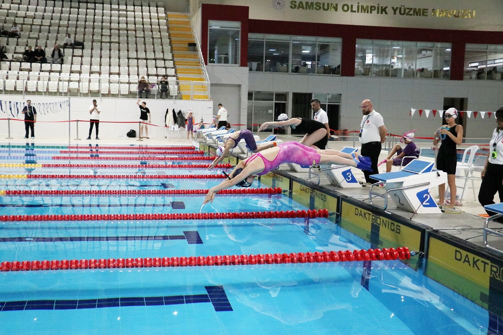 Samsun Gençlik ve Spor İl Müdürlüğü tarafından organize edilen Okullar Arası Paletli Yüzme İl Birinciliği müsabakaları, kentin spor altyapısının önemli merkezlerinden biri olan Atakum Olimpik Yüzme Havuzu’nda icra edildi. İki gün süren yoğun mücadelelerin ardından kendi kategorilerinde başarı gösteren genç sporcular, kürsüye çıkarak madalyalarını aldı. Samsun genelindeki okullardan katılım sağlayan sporcular, 25-26 Mart 2026 tarihlerinde düzenlenen il birinciliği için kulvarlarda ter döktü. Atakum Olimpik Yüzme Havuzu’nun ev sahipliği yaptığı müsabakalarda, paletli yüzme branşının farklı kategorilerinde dereceler belirlendi.