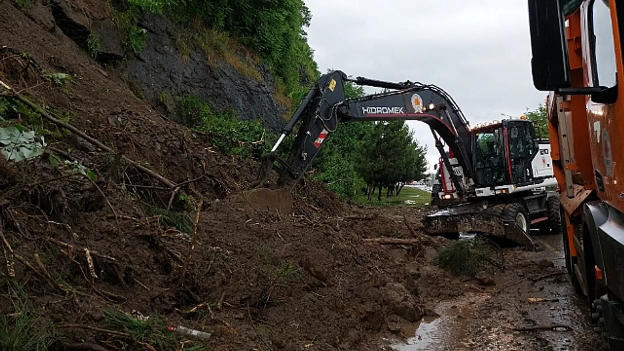 Ancak bir süre sonra aynı yerde tekrar heyelan oldu. Ekipler yine iş makineleri yardımıyla temizleme çalışması başlattı.