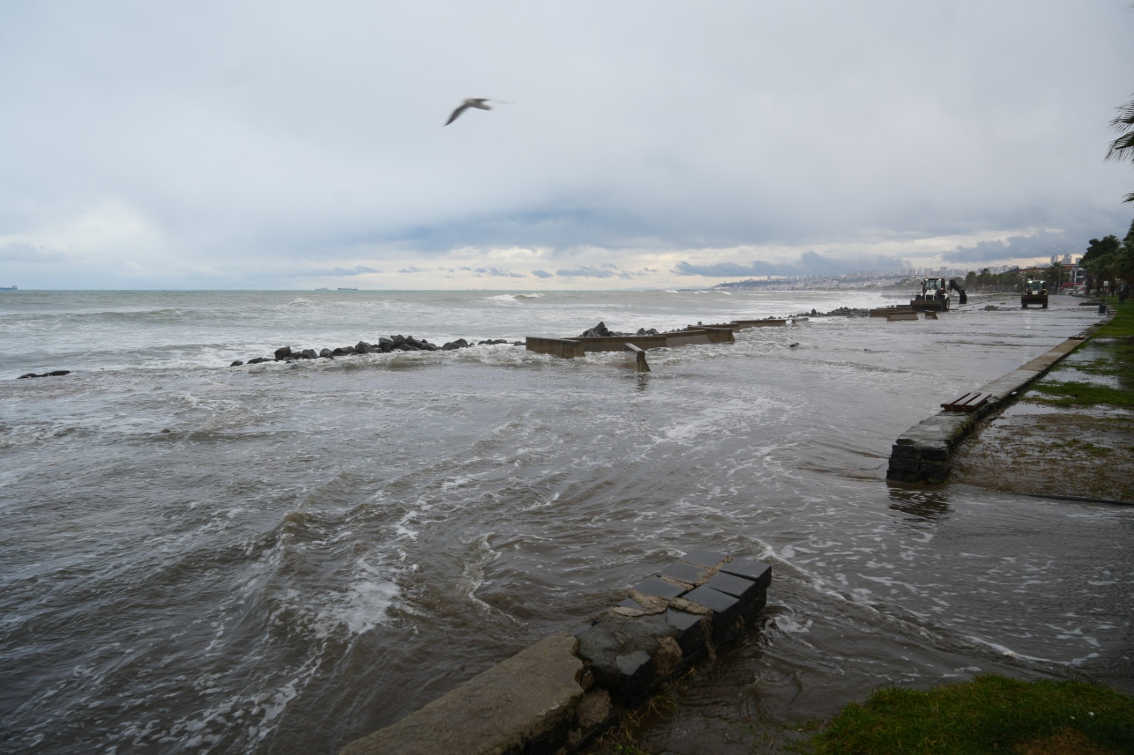 Gece saatlerinden itibaren etkili olan fırtına nedeniyle oluşan 3–4 metreyi aşan dalgalar, sahildeki beton blokları yerinden söktü ve yürüyüş bandını taş, kum ve çöplerle doldurdu. Samsun Büyükşehir Belediyesi ekipleri iş makineleri desteğiyle sahilde temizlik ve düzenleme çalışmalarını sürdürüyor.