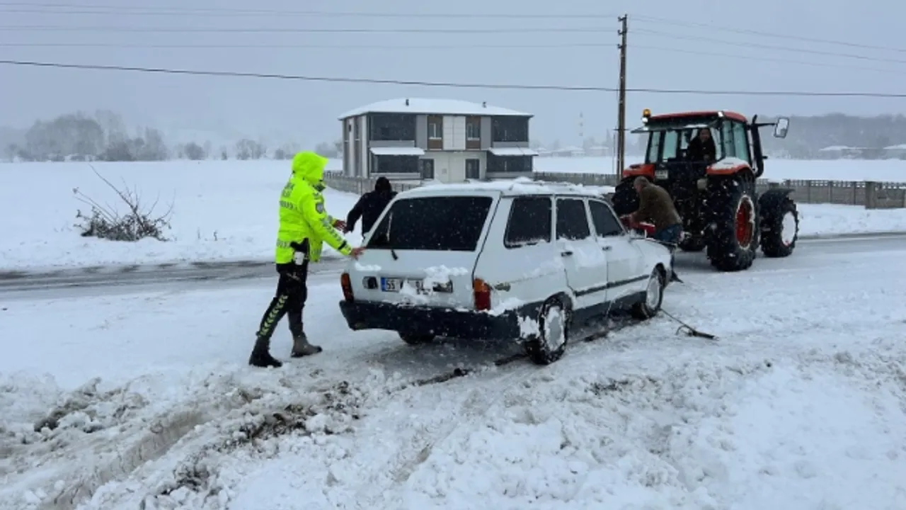 Samsun-Sinop karayolunda etkili olan yoğun kar yağışı ve buzlanma, sürücülere zor anlar yaşattı. Bafra-Sinop hattında teyakkuzda olan trafik ekipleri, yolda kayan araçları kurtarmak için seferber oldu.