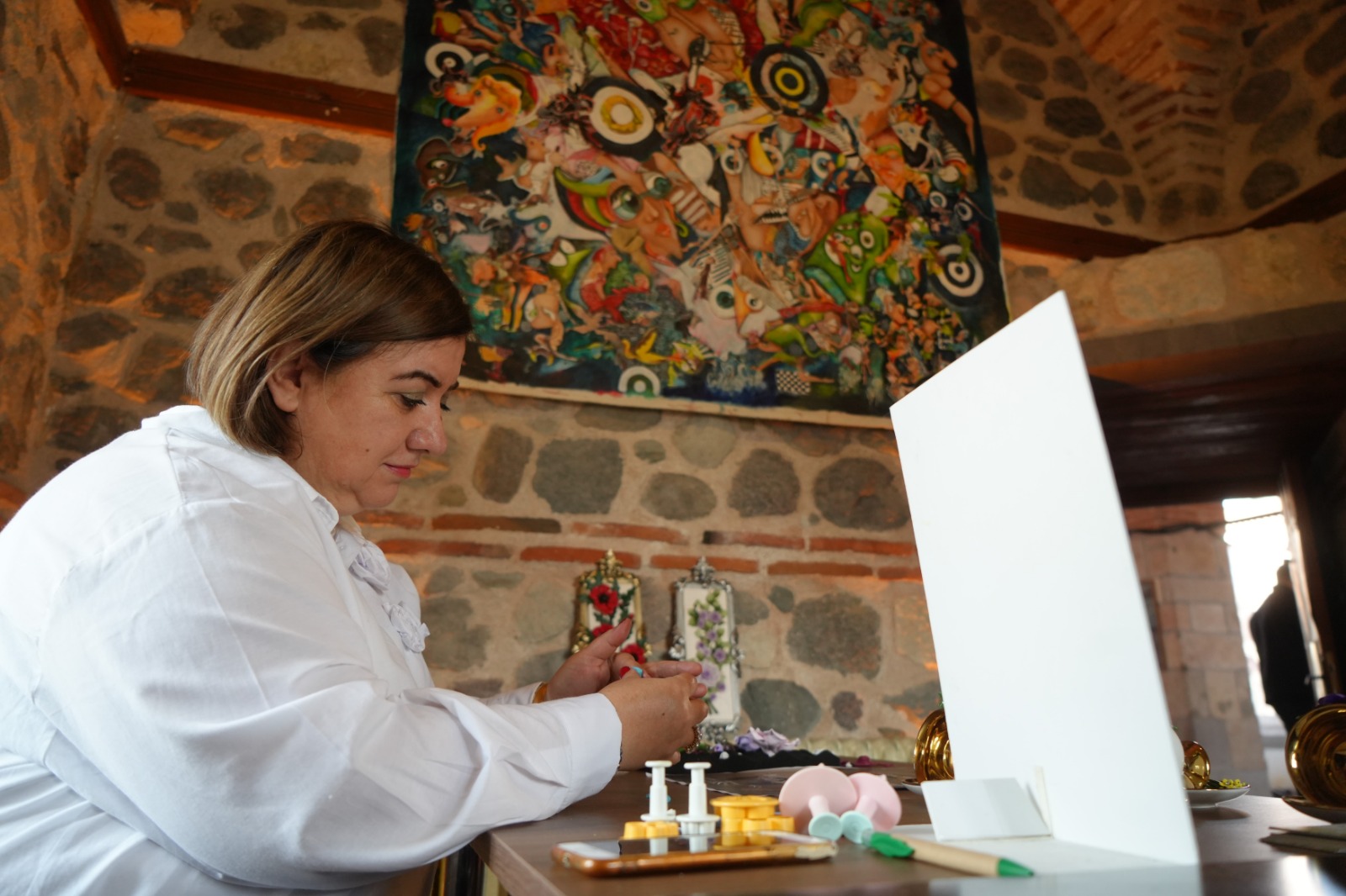 Tarihi Taşhan’da faaliyet gösteren kadınlar, hem geçmişin izlerini geleceğe taşıyor hem de el emeğiyle ürettikleri ürünlerle aile ekonomilerine katkıda bulunuyor. Üretilen eserler, hem yerel hem de ulusal pazarlarda sanatseverlerle buluşuyor.