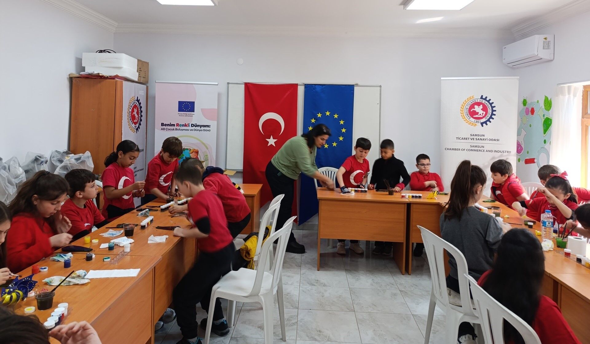 Samsun TSO çatısı altında faaliyetlerini sürdüren Samsun AB Bilgi Merkezi, "Dünya Günü" kapsamında çevre bilincini çocuklarda güçlendirmek amacıyla, Doğanın Çocukları Akademisi’nin (DOÇAK) doğal ortamında "Benim Renkli Dünyam: AB Çocuk Buluşması" etkinliği organize etti. Samsun merkezde bulunan ilköğretim okullarından gelen 50 öğrencinin katılımıyla gün boyu devam eden etkinlikte, çocukların çevreyle kurdukları ilişkiyi güçlendirmek, sürdürülebilir yaşam alışkanlıkları kazandırmak ve iklim değişikliği konusunda farkındalıklarını artırmak hedeflendi. Program boyunca çocuklar yalnızca teorik bilgi edinmekle kalmadı; aynı zamanda doğrudan deneyimleyerek öğrenme fırsatı buldu. Etkinlik kapsamında hazırlanan içerikler, Avrupa Birliği’nin iklim eğitimi, çevre koruma politikaları ve döngüsel ekonomi yaklaşımından ilham alınarak oluşturuldu. Bu doğrultuda çocuklara; kaynakların verimli kullanımı, atıkların geri dönüştürülmesi ve doğayla uyumlu yaşam pratikleri gibi konular uygulamalı etkinliklerle aktarıldı. Eğitimin merkezine alınan "yaparak ve yaşayarak öğrenme" yaklaşımı sayesinde öğrenciler, günlük yaşamlarında uygulayabilecekleri çevre dostu davranışları somut örnekler üzerinden keşfetti.