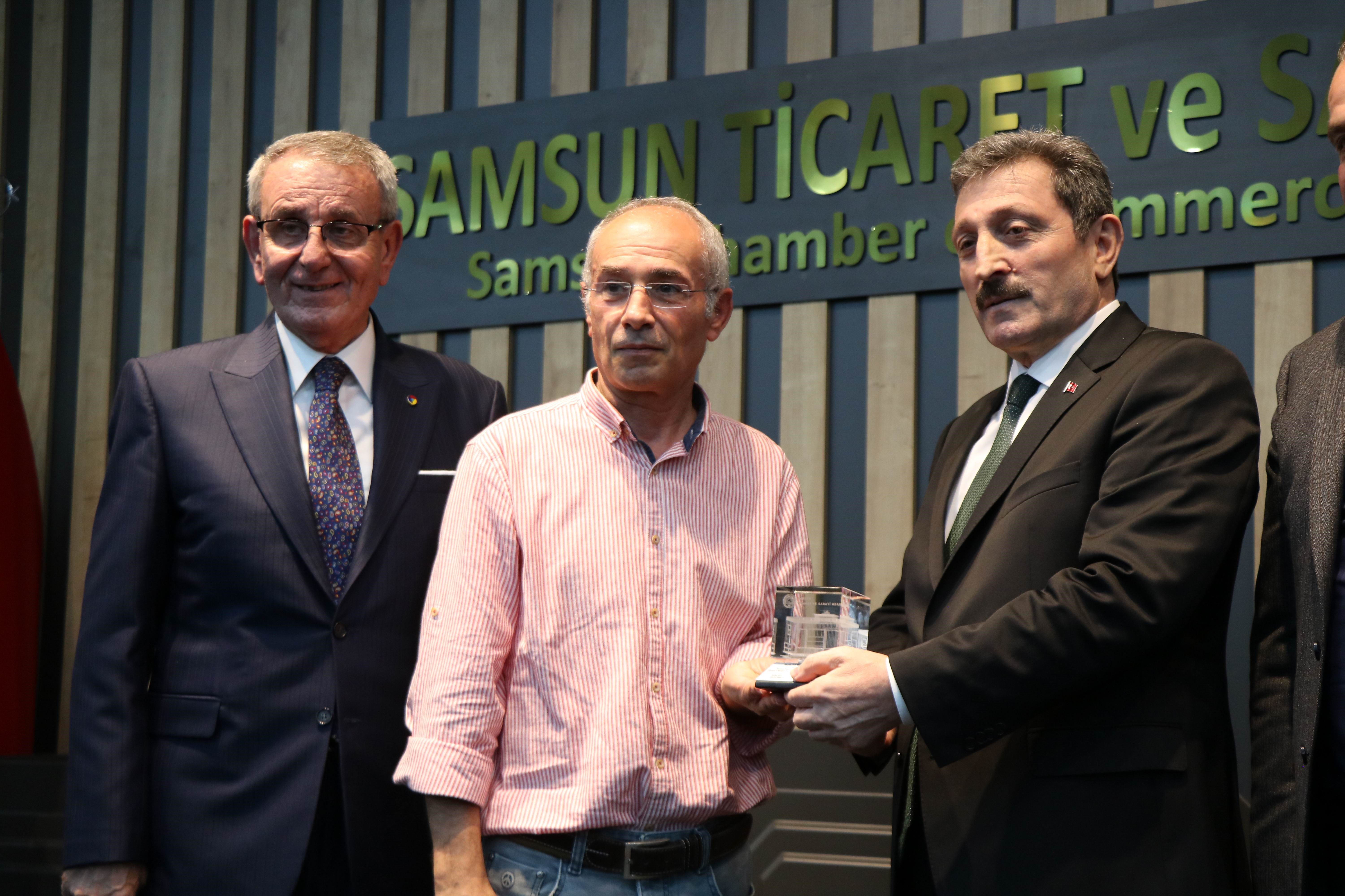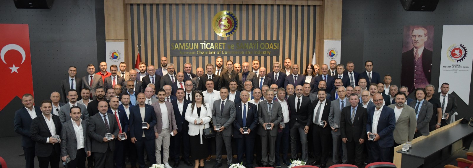 Plaket töreni öncesinde odanın yaptığı faaliyetler hakkında bilgi veren Samsun Ticaret ve Sanayi Odası Yönetim Kurulu Başkanı Salih Zeki Murzioğlu ise, “Bölgenin kültürel ve ticari bağlamda buluşma noktası olan, Anadolu’nun Karadeniz’e açılan kapısı Samsun’da 100 yılı aşkın bir süredir hizmet veren Samsun Ticaret ve Sanayi Odası şehrin ve bölgenin kalkınmasına katkı veren en önemli aktörlerden biridir. Bu bağlamda en önemli girişimimiz de şüphesiz birleştirici ve inisiyatif alarak koordine edici olmamızdır. Şehrimizin ticari ve ekonomik anlamda Odamızın inisiyatif alarak imza attığı projelerin arkasında şüphesiz meclis üyelerimizin güveni ve sonsuz desteği bulunmaktadır. Bugün düzenlediğimiz bu plaket törenimizin anlam ve önemi işte bu desteğe duyulan vefa ve şükrandır. Samsun Ticaret ve Sanayi Odası olarak iş dünyasının temsil yüzüyüz. Şehrimizin sahip olduğu potansiyelin ve ihtiyacının farkında olarak ulaşım akslarına yakın bir organize sanayi alanının oluşturulması konusunda girişimlerde bulunduk. Endüstriyel bölgeden önce organize sanayi bölgesi olması konusunda ısrarcı davrandık. En nihayetinde Türkiye’nin 354. Organize Sanayi Bölgesi resmi olarak ilan edildi ve şehrimizin kalkınmasına katkı veren aktörlerle birlikte Samsun Yeni OSB’yi şehrimize kazandırdık. Bu bir bayrak yarışı. 100 yıl evvel başlayan bu tarihin bize emanetini her geçen gün çıtayı çok daha yükselterek taşımaya gayret ettik. Evet; çıta çok yüksek ama bizim bu şehre olan tutkumuz da bir o kadar kuvvetli. Bizler 100 yılı aşkın köklü bir tarihe sahip Odamızın köklerinden aldığı deneyim ve güçle, her daim genç kalacak ideallerimizle Güçlü Samsun, Güçlü Türkiye hedefiyle; Atatürk’ün bizlere miras bıraktığı ‘Vatanını En Çok Seven, İşini En İyi Yapandır’ sözü rehberliğinde Samsunumuzu ve Samsun Ticaret ve Sanayi Odamızı kurumsal anlamda daha yüksek bir seviyeye taşımaya gayret edeceğiz” diye konuştu.