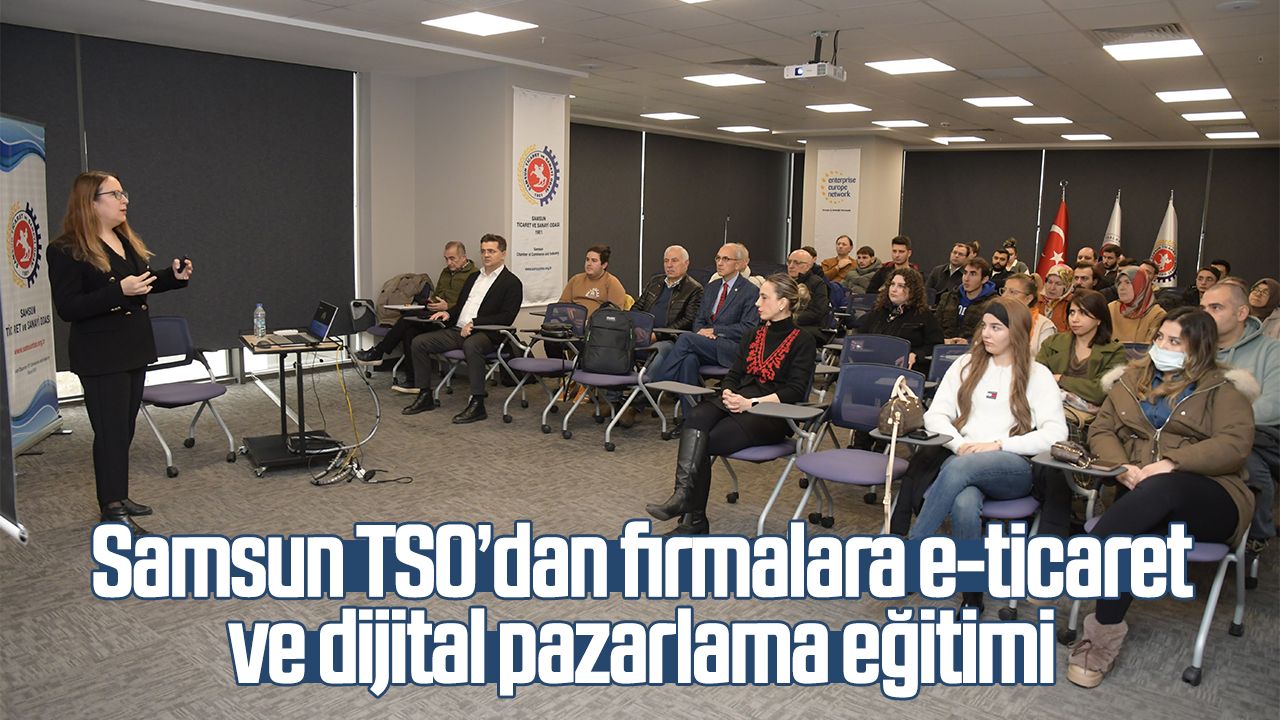 Samsun TSO Toplantı Salonu’nda gerçekleştirilen eğitim programında, deneyimli eğitmen Miray Hazal Akkahve’nin sunumuyla katılımcılara geniş kapsamlı bilgiler aktarıldı. Eğitimde; “E-Ticaret Ekosistemi ve Fırsatlar”, “Pazar Yerlerine Giriş ve Hesap Yönetimi”, “E-Ticarette Başarılı Ürün Stratejileri”, “Dijital Pazarlama ve Görünürlük Artırma” ile “E-İhracata Giriş” başlıkları ele alındı.