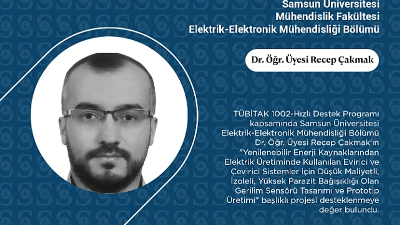 Samsun Üniversitesi Mühendislik Fakültesi Elektrik-Elektronik Bölümünden Dr. Öğretim Üyesi Recep ÇAKMAK’ın yürütücüsü olduğu ve Arş.Gör. Burhan HÜKÜMEN’in bursiyer olarak yer aldığı “Yenilenebilir Enerji Kaynaklarından Elektrik Üretiminde Kullanılan Evirici Ve Çevirici Sistemler İçin Düşük Maliyetli, İzoleli, Yüksek Parazit Bağışıklığı Olan Gerilim Sensörü Tasarımı Ve Prototip Üretimi” başlıklı ARGE projesi TÜBİTAK “1002-A Hızlı Destek Programı” kapsamında desteklenmeye değer bulundu.