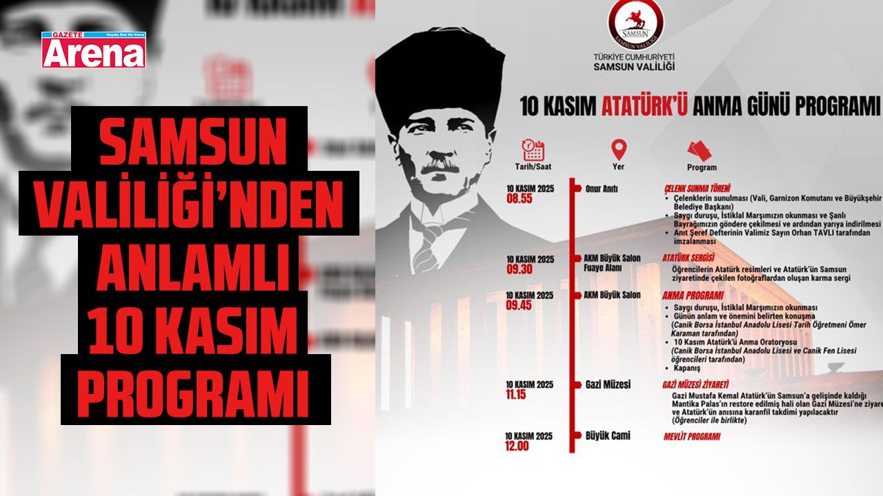 Samsun halkı, 10 Kasım’da Gazi Mustafa Kemal Atatürk’ü saygı ve özlemle anmak için çeşitli tören ve etkinliklerde buluşacak. Samsun Valiliği de günün programını duyurdu.
