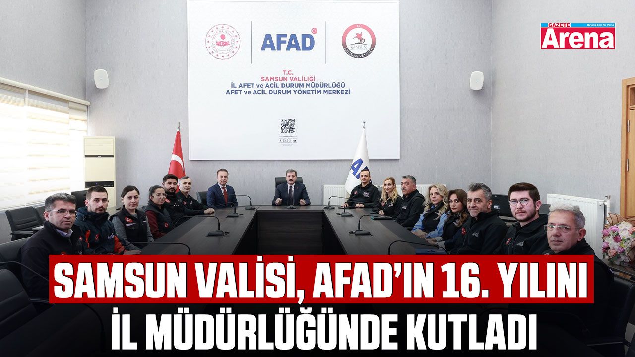 Afet ve Acil Durum Yönetimi Başkanlığı (AFAD), 16. kuruluş yıl dönümünü kutladı. Samsun Valisi Orhan Tavlı, bu kapsamda AFAD Samsun İl Müdürlüğü’nü ziyaret ederek İl Müdürü Ahmet Matur, şube müdürleri ve personelle bir araya geldi.