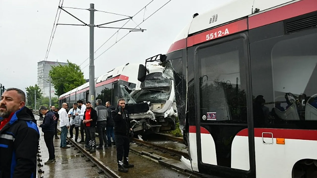 Kaza nedeniyle tramvay seferleri aksarken, trenleri kaldırma çalışmaları devam ediyor.
