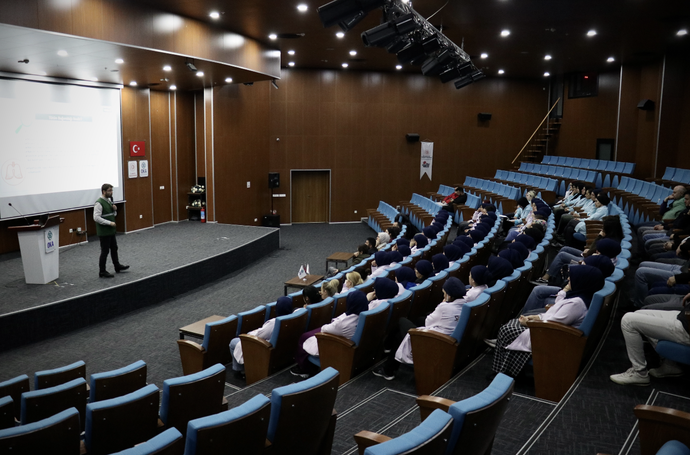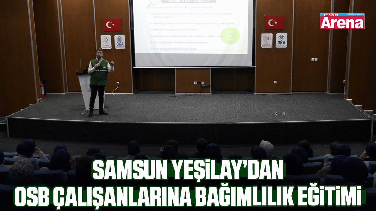 Orta Karadeniz Kalkınma Ajansı (OKA) Toplantı Salonu'nda OSB'de faaliyet gösteren bir tekstil fabrikasındaki çalışanlara Yeşilay gönüllüleri eğitim verdi. Eğitimde, tütün, alkol, madde, kumar ve teknoloji bağımlılıklarıyla ilgili bilgilendirme yapılıp Yeşilay Danışmanlık Merkezi'ndeki (YEDAM) hizmetlerden bahsedildi.