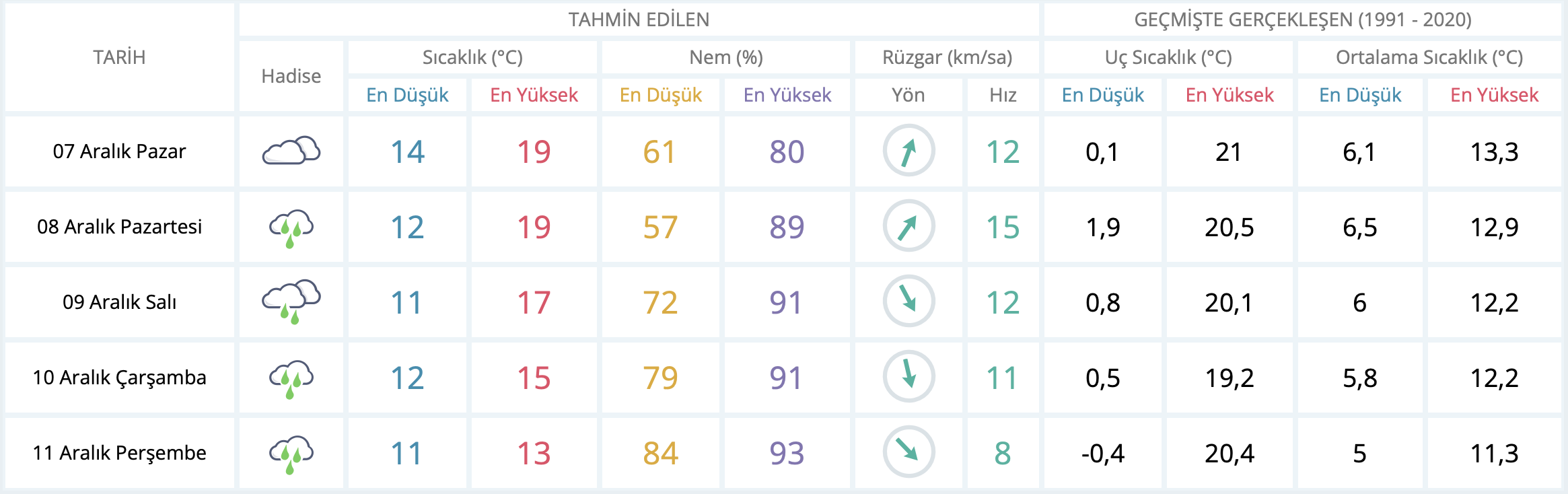 7 Aralık Pazar günü kent genelinde çok bulutlu bir hava beklenirken sıcaklıklar 14–19 derece aralığında seyredecek.