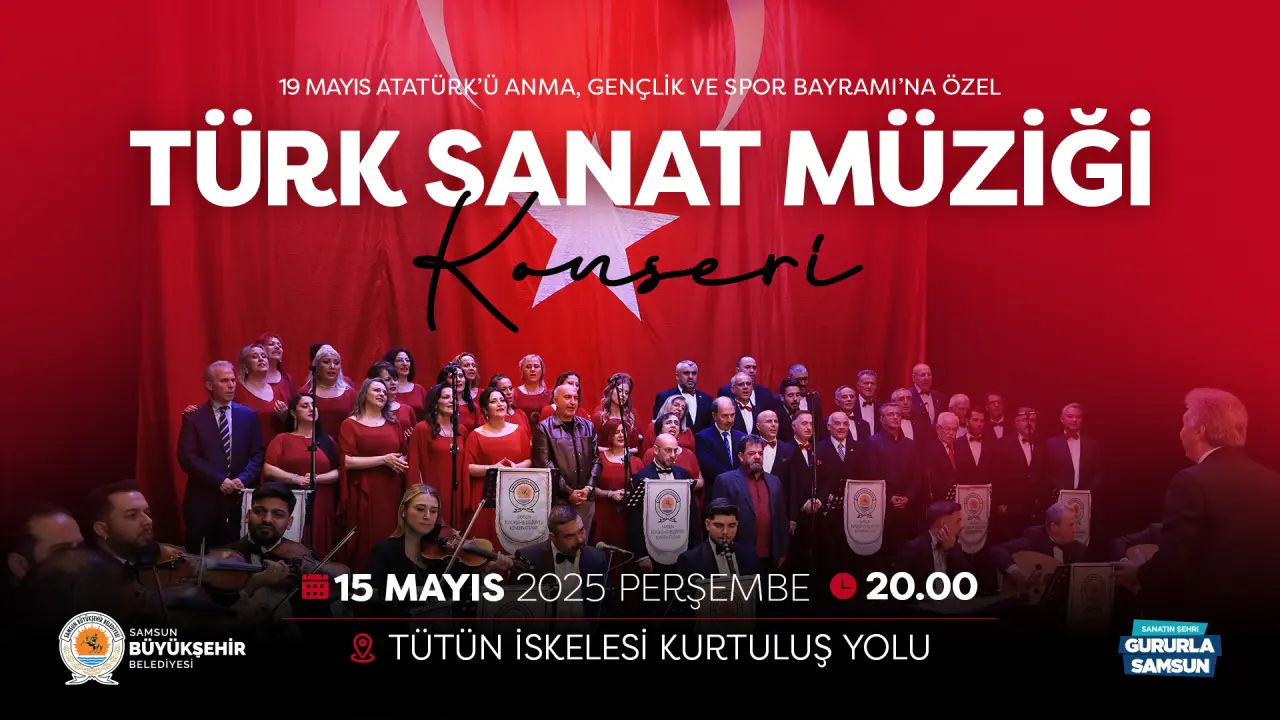 Milli mücadelenin simge şehirlerinden Samsun, 19 Mayıs Atatürk’ü Anma, Gençlik ve Spor Bayramı'nı coşkuyla karşılamaya hazırlanıyor. Samsun Büyükşehir Belediyesi, bayram ruhunu sanatla buluşturan anlamlı bir etkinliğe imza atıyor. 19 Mayıs’a özel olarak düzenlenen Türk Sanat Müziği Konseri, bu akşam (15 Mayıs Perşembe) saat 20.00’de Tütün İskelesi Kurtuluş Yolu’nda gerçekleştirilecek. Katılımcılar, tarihi atmosferde sanatın ve müziğin büyüsüyle unutulmaz bir akşam yaşayacak.