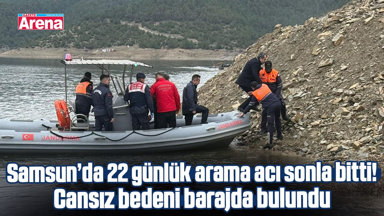 Samsun'un Vezirköprü ilçesinde 22 gündür kayıp olarak aranan 60 yaşındaki Nimet Serdar'ın cansız bedeni baraj gölünde bulundu. Vezirköprü ilçesine bağlı Susuz Mahallesi'nde ikamet eden Serdar'dan 17 Ocak Cumartesi günü sabah saatlerinde evinden ayrıldıktan sonra bir daha haber alınamadı. Yakınlarının kayıp ihbarında bulunması üzerine bölgede arama kurtarma çalışması başlatıldı.