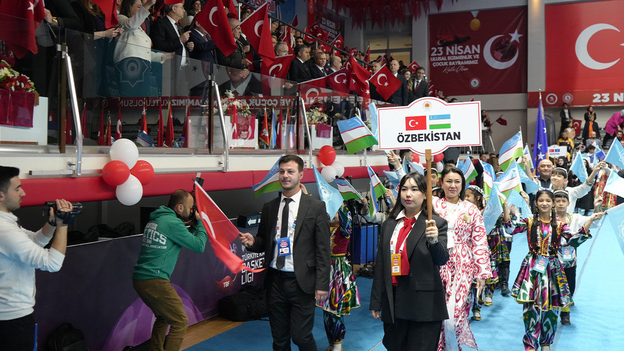 "Azerbaycan'dan, Gagavuzya'dan, Kuzey Kıbrıs Türk Cumhuriyeti'nden, Kazakistan'dan, Kırgızistan'dan, Kırım'dan, Özbekistan'dan, Kosova'dan, Malkarya'dan ve Türkiye'den çocuklarımız beraberce bayramımızı kutluyor. Bugün Türk dünyasının çocuklarıyla Türkiye Cumhuriyeti Devleti'nin çocuklarının buluştuğu gün. Devletimizin kurumları, Türk dünyası diye sizlere bir dünya armağan ediyor. Bu dünya bizim dünyamız. Bu dünya Adriyatik'ten başlar, ta Avrupa'nın ortasına kadar uzanır. Kazakistan, Özbekistan, Türkmenistan, Azerbaycan, Kırgızistan, Macaristan, Türkiye, Kuzey Kıbrıs Türk Cumhuriyeti. Dünyanın tam da kalbini ifade eder. İşte bu dünyanın çocuklarısınız siz. Bu dünyanın insanlarıyız biz. Biz dünyanın aynı zamanda merhamet, barış, huzur ve esenlik dolu yeriyiz. Biz yoksak dünyada aslında huzur olmuyor. Tarih bunu göstermiştir. Biz yoksak dünyada tarih de yok. Doğru dürüst tarih bile yazılamaz bu dünyanın. O yüzden siz çocuklar bu dünyanın geleceği, bu dünyanın huzuru, bu dünyanın aynı zamanda barışısınız, sembolüsünüz. O yüzden biz varsak her yerde barış oluyor. Savaşların ortasında Türk dünyası güvenli alan, güzel alan, huzurlu alan olarak yükseliyor. Bu konuda bizlere destek olan, sizlere destek olan kim varsa hepsine buradan bir teşekkür ediyoruz."