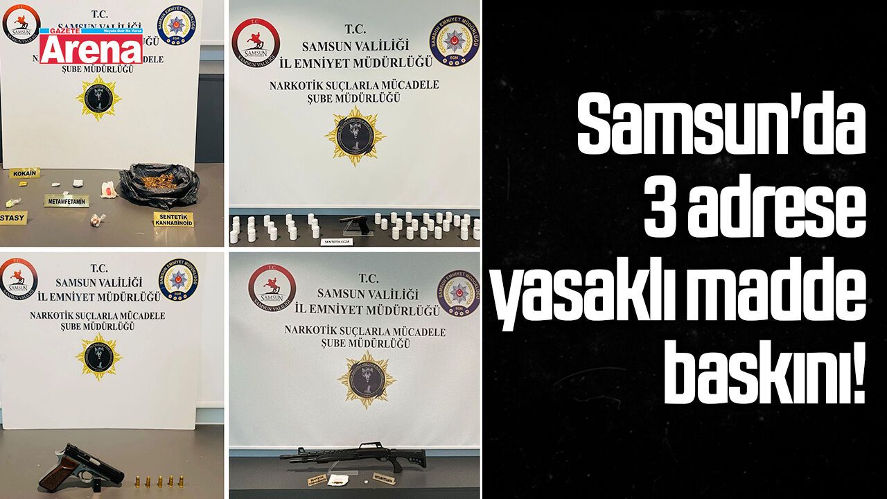 Samsun'da İl Emniyet Müdürlüğü Narkotik Suçlarla Mücadele Şubesi ekiplerince İlkadım, Canik ve Havza ilçelerinde belirlenen adreslere operasyon gerçekleştirildi.