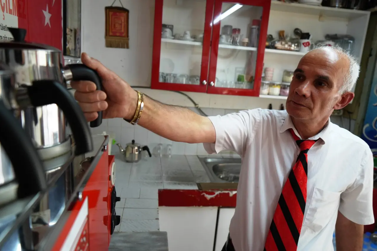 Samsun’un İlkadım ilçesinde Bedesten Çarşısı’nda çay ocağı işleten 52 yaşındaki Adem Yıldırım, 30 yıldır gömlek, kumaş pantolon ve kravatıyla çay servisi yaparak dikkat çekiyor. Müşterilerine duyduğu saygıyı kıyafetiyle de gösteren Yıldırım, bu alışkanlığıyla hem daimi müşterilerinden hem de ilk kez gelenlerden büyük takdir topluyor.