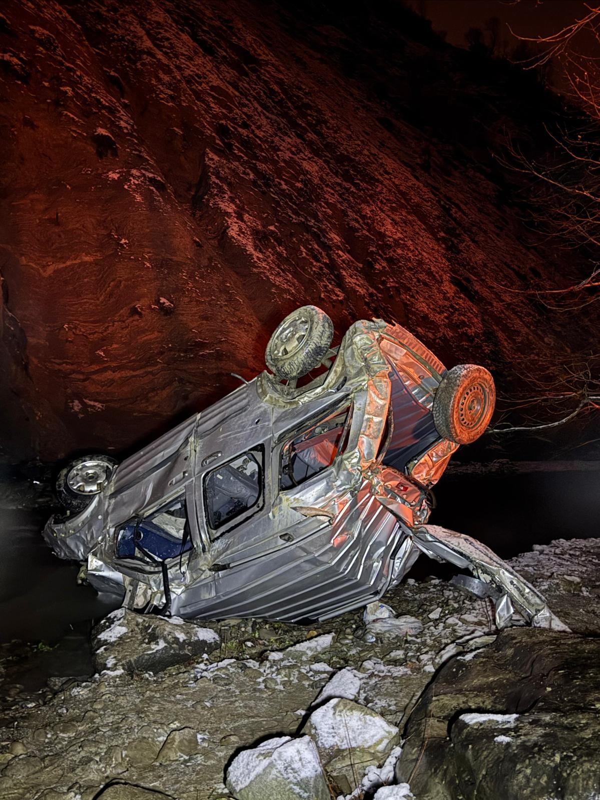 ARAÇ DERE YATAĞINA DEVRİLDİ