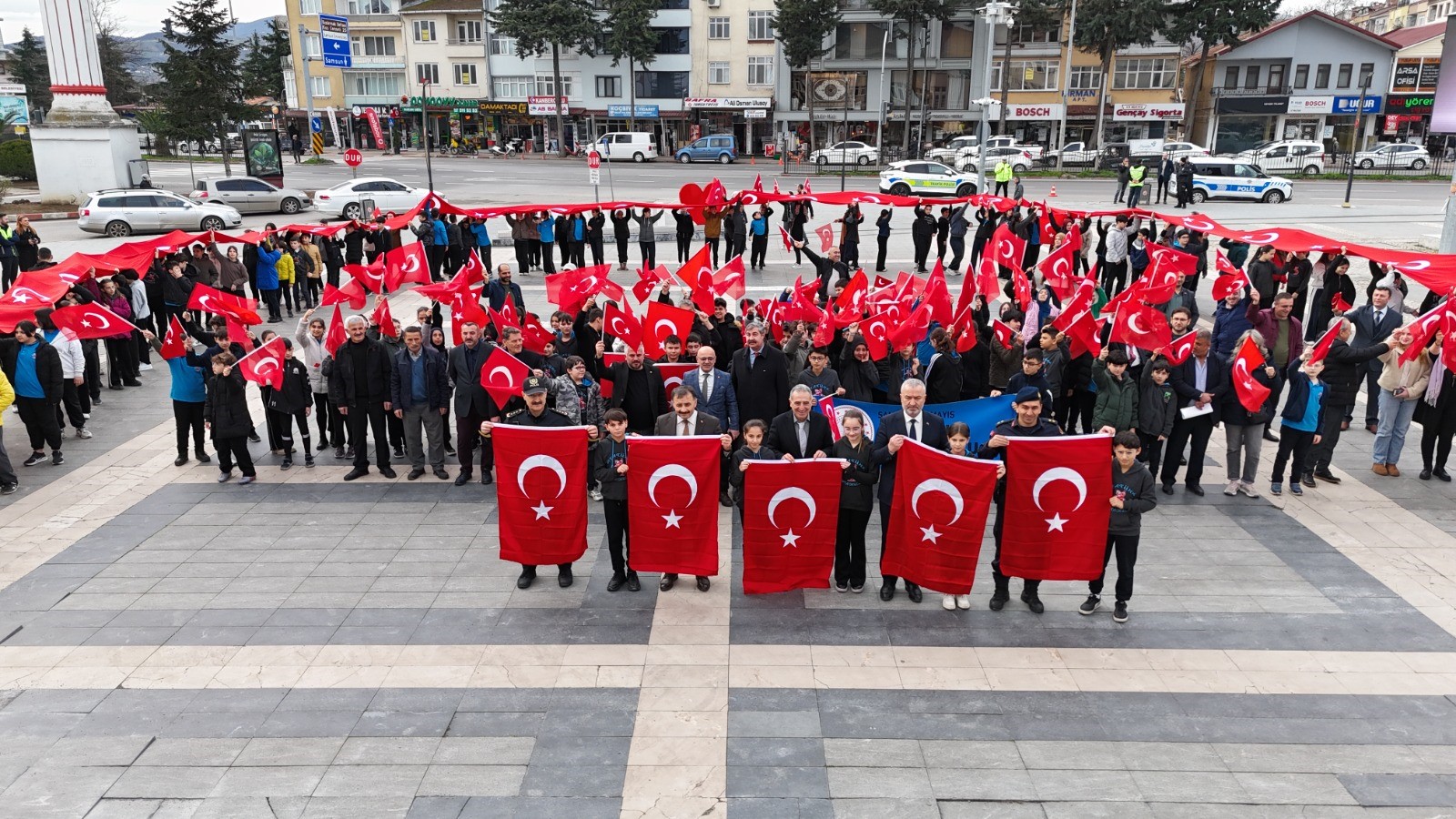 Samsun 19 Mayıs Atatürk Ortaokulu tarafından Bayrak Sevgisi Haftası kapsamında düzenlenen bayraklı kortej yürüyüşü, ilçede büyük bir katılımla gerçekleştirildi.