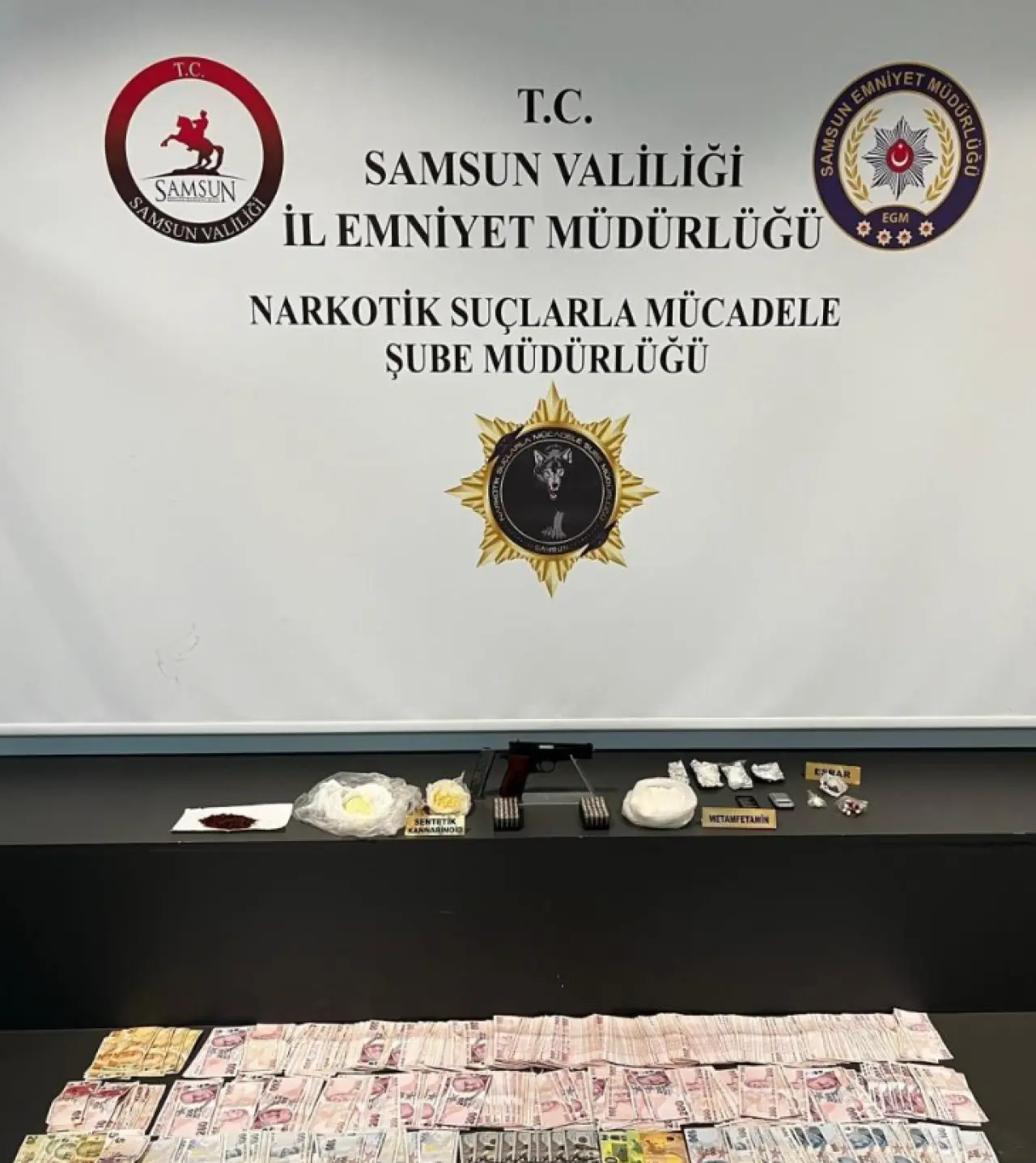 Yapılan aramalarda toplamda 440 gram metamfetamin, 191 gram fubinaca, 8 gram bonzai (sentetik kannabinoid), 13 adet sentetik ecza ve 0,44 gram esrar maddesi bulundu. Uyuşturucu maddelerin yanı sıra, operasyon sırasında 1 ruhsatsız tabanca, 100 adet tabanca fişeği ve 1 hassas terazi de ele geçirildi. Polis ekipleri ayrıca uyuşturucu ticaretinden elde edildiği değerlendirilen 147 bin Türk Lirası, 250 Euro ve 900 Amerikan Doları nakit paraya da el koydu.