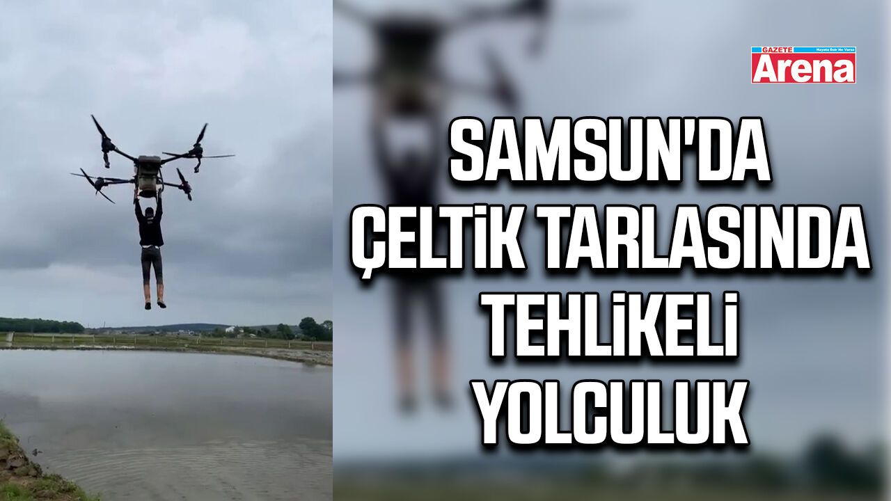 Samsun’un Bafra ilçesinde bir çiftçinin tarım dronuna tutunarak havalanması cep telefonu kamerasına yansıdı. Çeltik tarlasını ilaçlamak için kullanılan dronla birlikte uçan çiftçinin görüntüleri sosyal medyada kısa sürede büyük ilgi gördü.