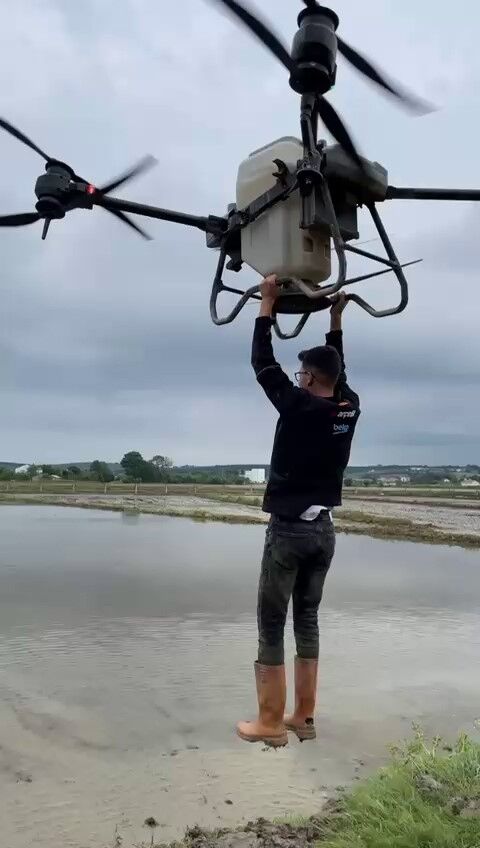 İddiaya göre çeltik tarlasını ilaçlamak için kullanılan drona tutunan çiftçi, tarlanın bir ucundan diğer ucuna doğru havalandı. O anlar çevrede bulunan bir kişi tarafından cep telefonu kamerasıyla kaydedildi.